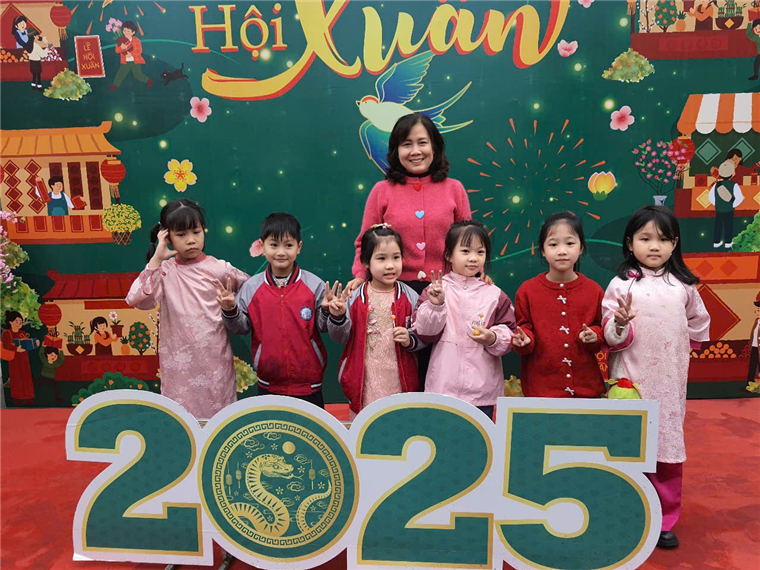 Các con học sinh lớp 1B trường Tiểu học Thủ Lệ hào hứng tham gia LỄ HỘI XUÂN 2025
