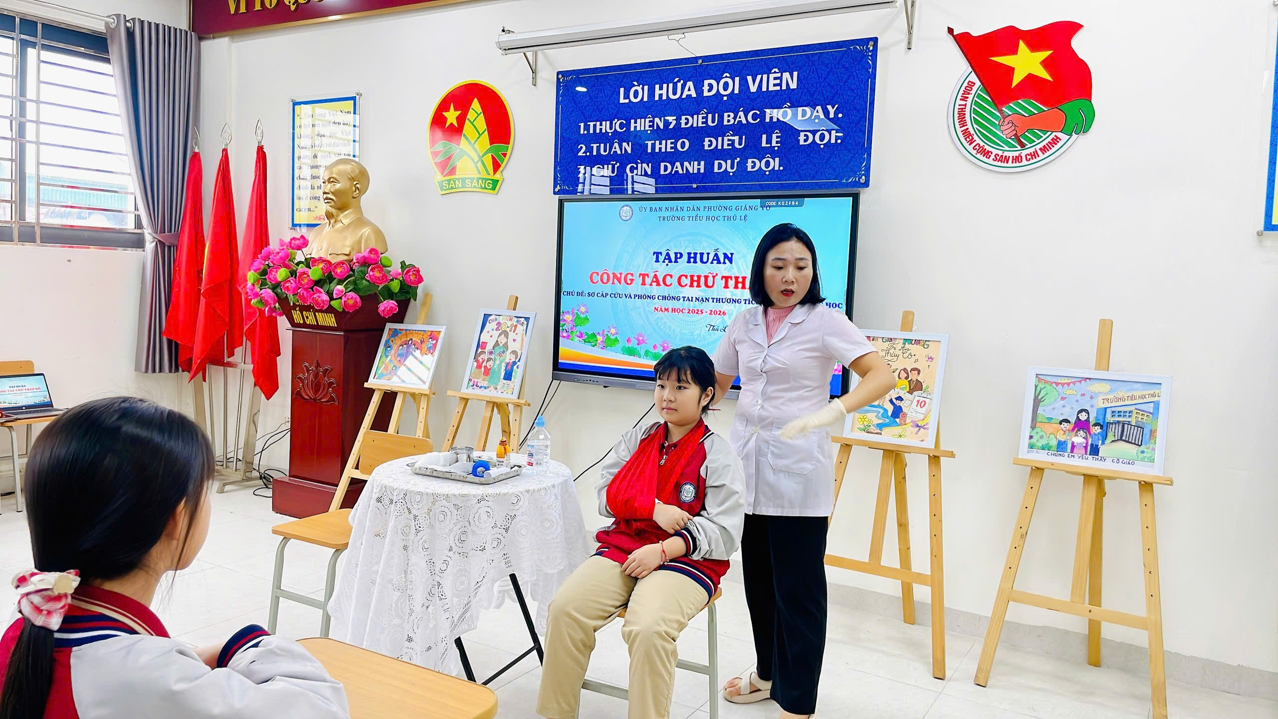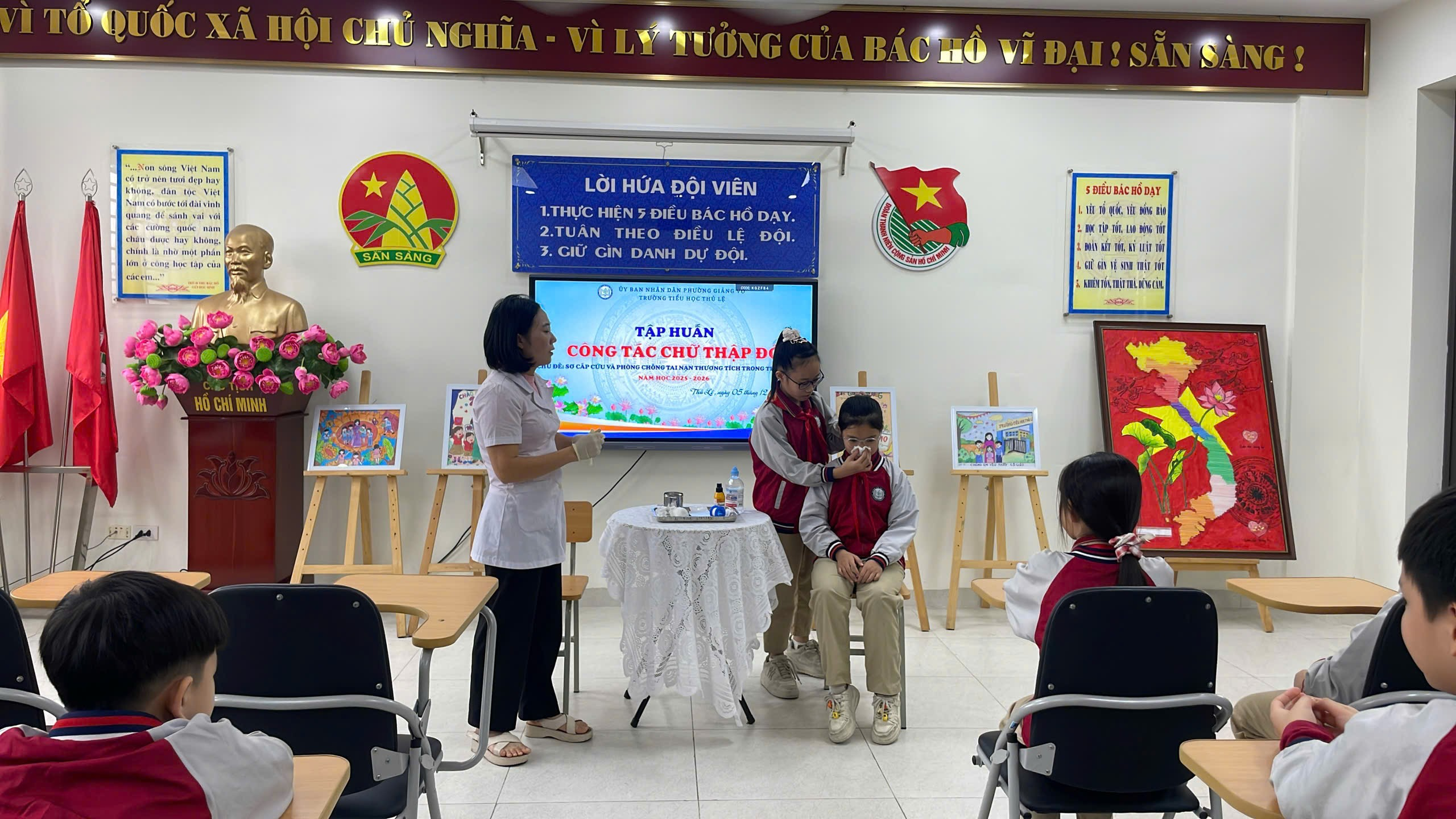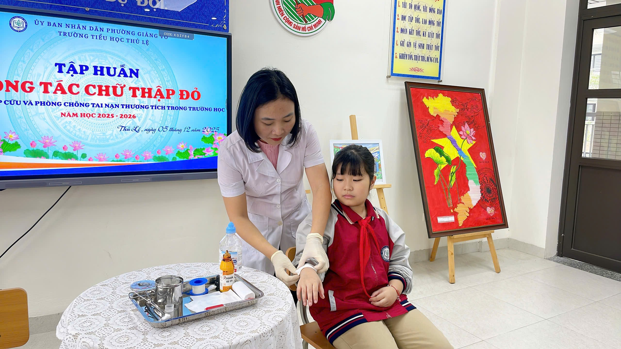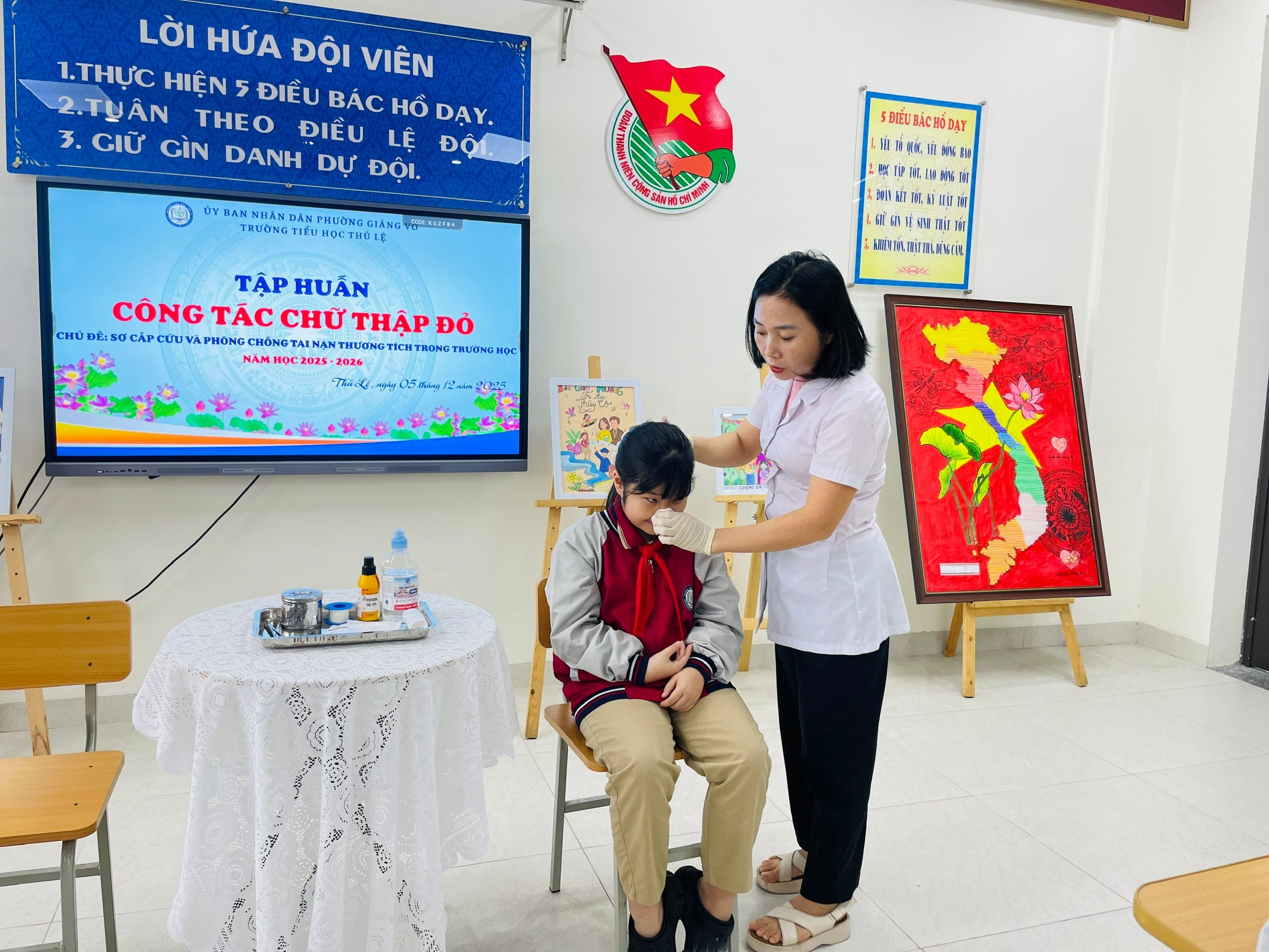 Sáng ngày 05/12/2025 nhân viên y tế trường tiểu học Thủ Lệ đã tập huấn cách xử lí sơ cứu ban đầu như: Chảy máu cam, chảy máu ngoài da... cho học sinh khối 4,5 trong đội xung kích chữ thập đỏ của trường. Các bạn trong đội xung kích rất hào hứng nghe hướng dẫn, nắm bắt nhanh nội dung và các bước sơ cứu. Buổi tập huấn diễn ra thành công, học sinh đều thành thạo các thao tác về sơ cấp cứu chảy máu cam, băng bó vết thương chảy máu ngoài da... Qua đợt tập huấn này những học sinh trong đội sẽ chủ động tập huấn và tuyên truyên cho các bạn của lớp của mình. Dưới đây là một số hình ảnh ghi lại trong buổi tập huấn.