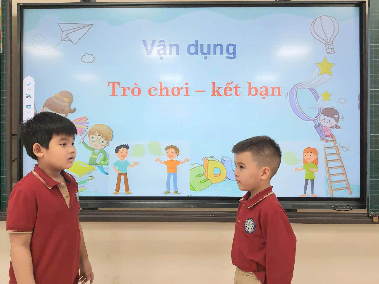 Các con tham gia trò chơi kết bạn, vận dụng kiến thức đã học vào thực tế.