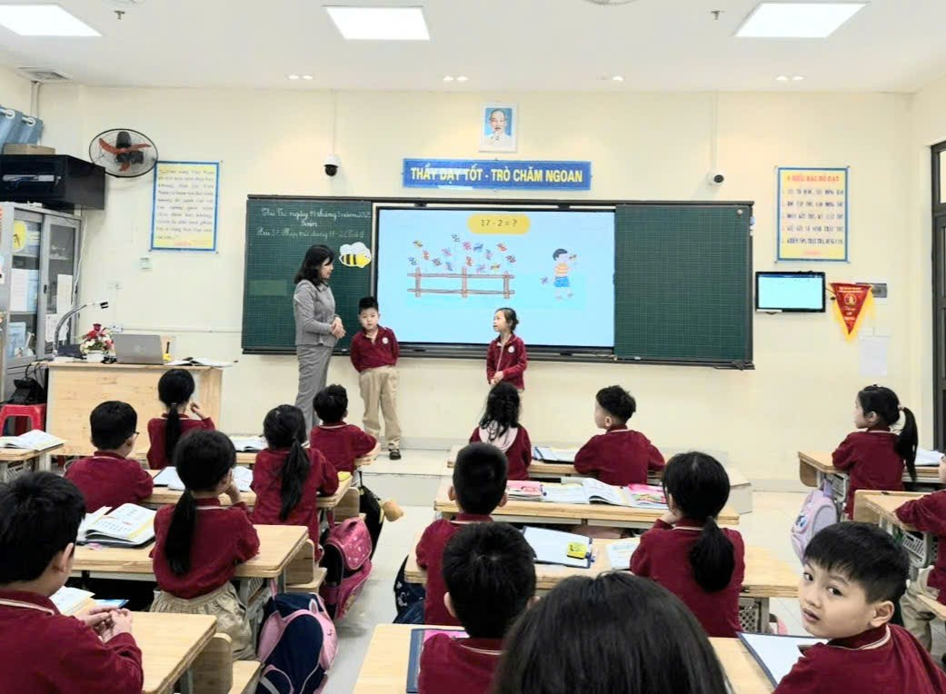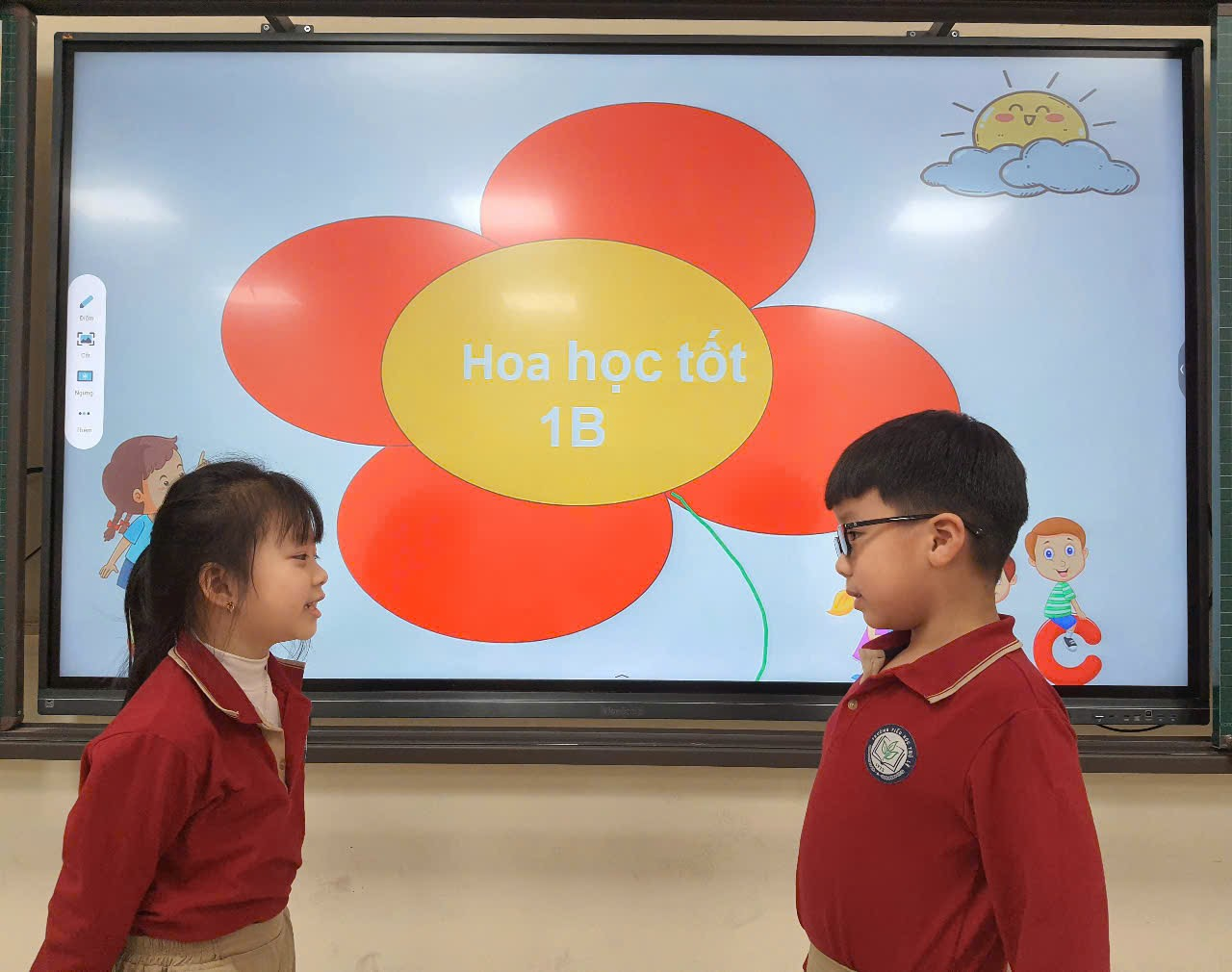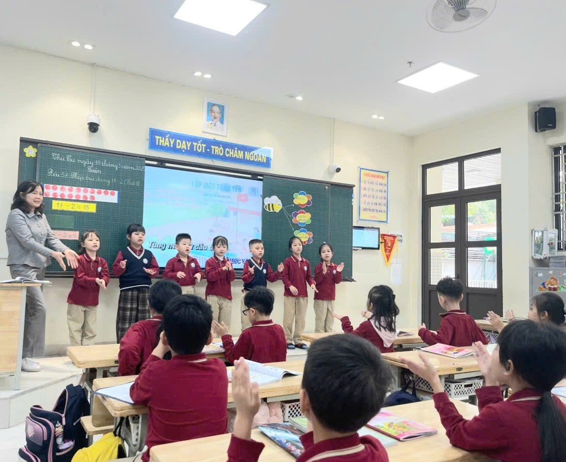 Tiết học khép đã khép lại sự hào hứng, niềm vui còn đọng trong mỗi các con học sinh. Cô giáo Trịnh Phương Linh - Hiệu trưởng nhà trường trò chuyện vui vẻ thân mật cùng các con. Cô rất vui nhìn thấy sự thưởng thành của các con học sinh lớp 1. Lớp có nếp học tốt cùng với sự tự tin trong các hoạt động học. Với các con học sinh lớp 1B mỗi ngày đến trường là một ngày vui!