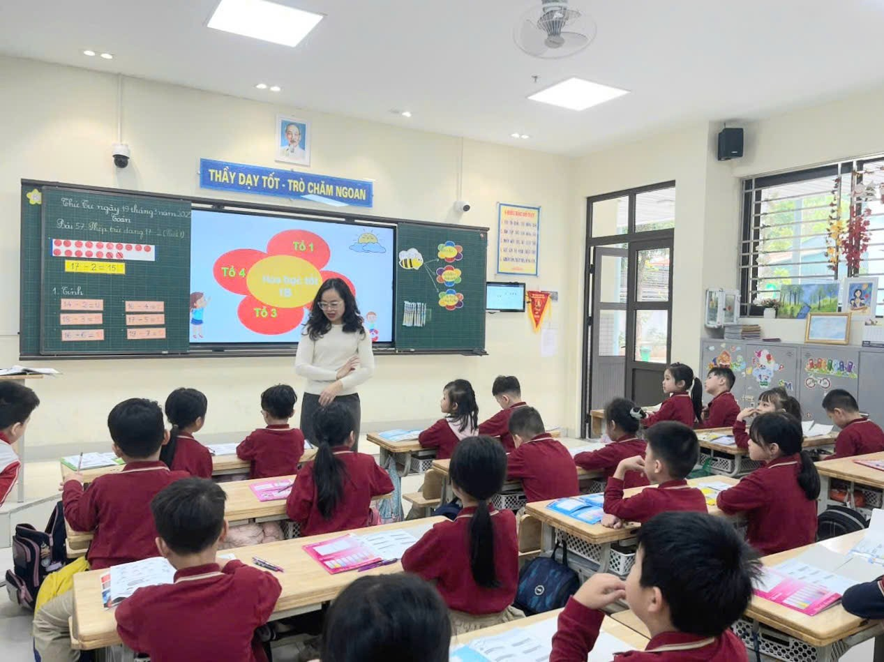 Mừng đảng, mừng xuân mừng đất nước đổi mới. Các con học sinh lớp 1B tham gia tiết học tốt Hội giảng mừng xuân. Với phương pháp dạy học đổi mới, hình thức dạy học linh hoạt sáng tạo, đồ dùng trực quan sinh động gần gũi giúp học sinh có nhiều hứng thú trong học tập. Dưới sự hướng dẫn của cô giáo, các con học sinh luôn làm chủ được tiết học, mạnh dạn tự tin tham gia mọi hoạt động. Tiết học thật vui, sôi nổi mang lại cho các con những kiến thức mới thú vị và bổ ích giúp các con phát triển tốt nhất về năng lực và phẩm chất. Dưới đây là một số hình ảnh của các con học sinh lớp 1B trong tiết học.