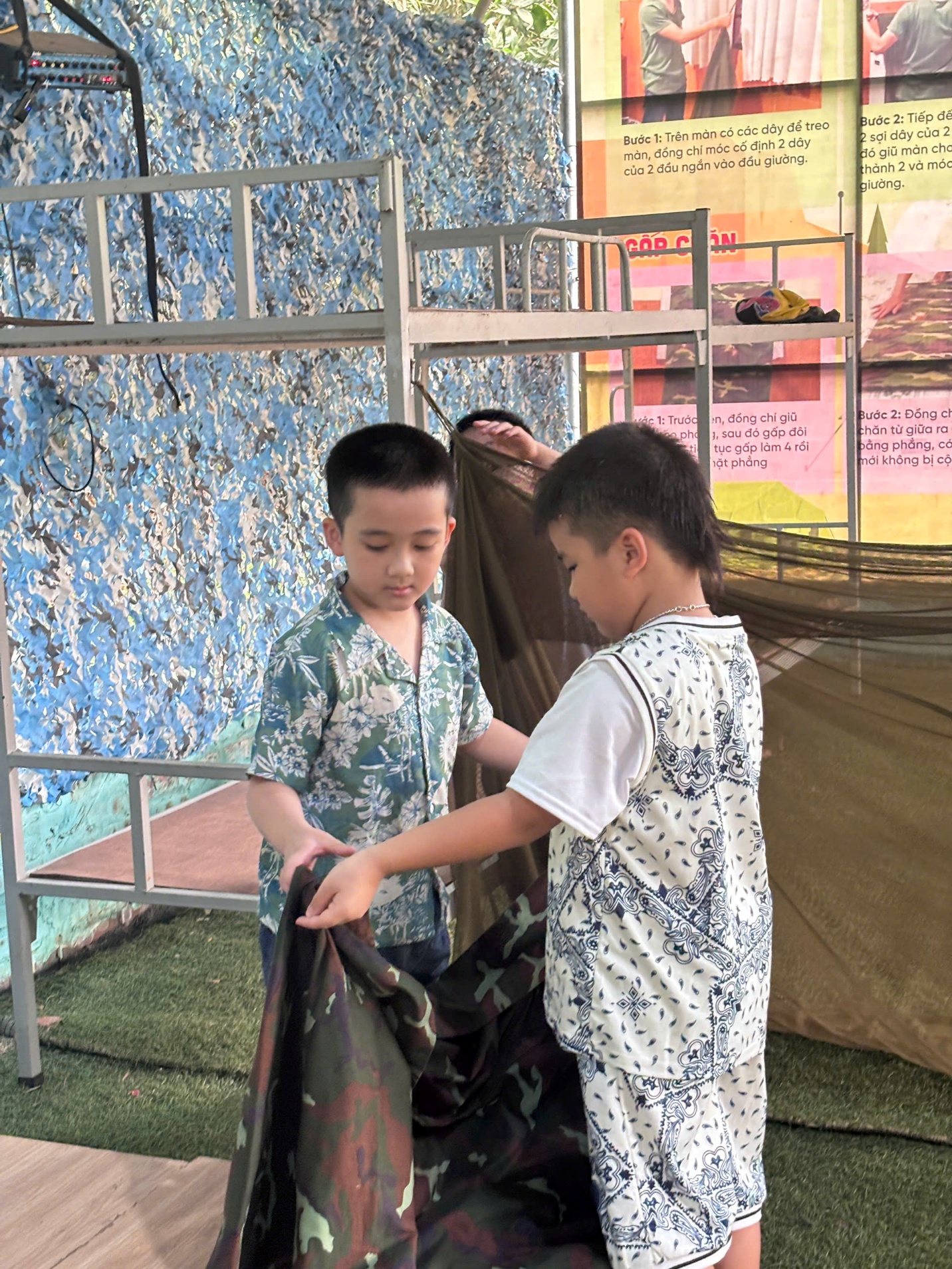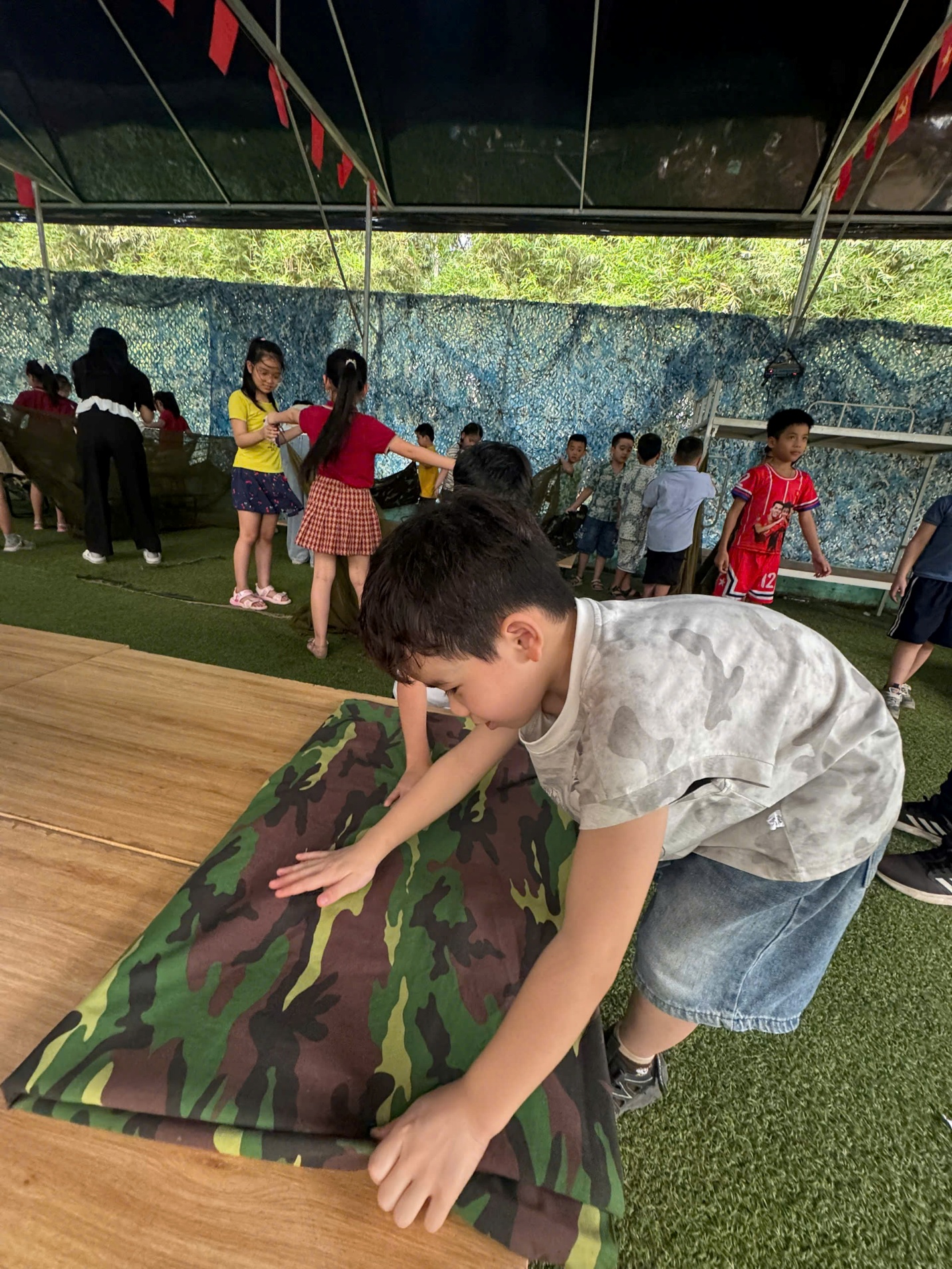 Tại đây, các em được hoá thân thành các chiến sĩ nhí trải nghiệm hoạt động của các lực lượng tinh nhuệ trong Quân chủng, Binh chủng quân đội nhân dân như khám phá tàu ngầm Kilo, rèn luyện kỹ năng nhảy dù, tiếp đất điêu luyện, vượt hàng rào, leo dây xoắn, tìm hiểu chiến thuật “Giao thông hào” vang dội lịch sử…