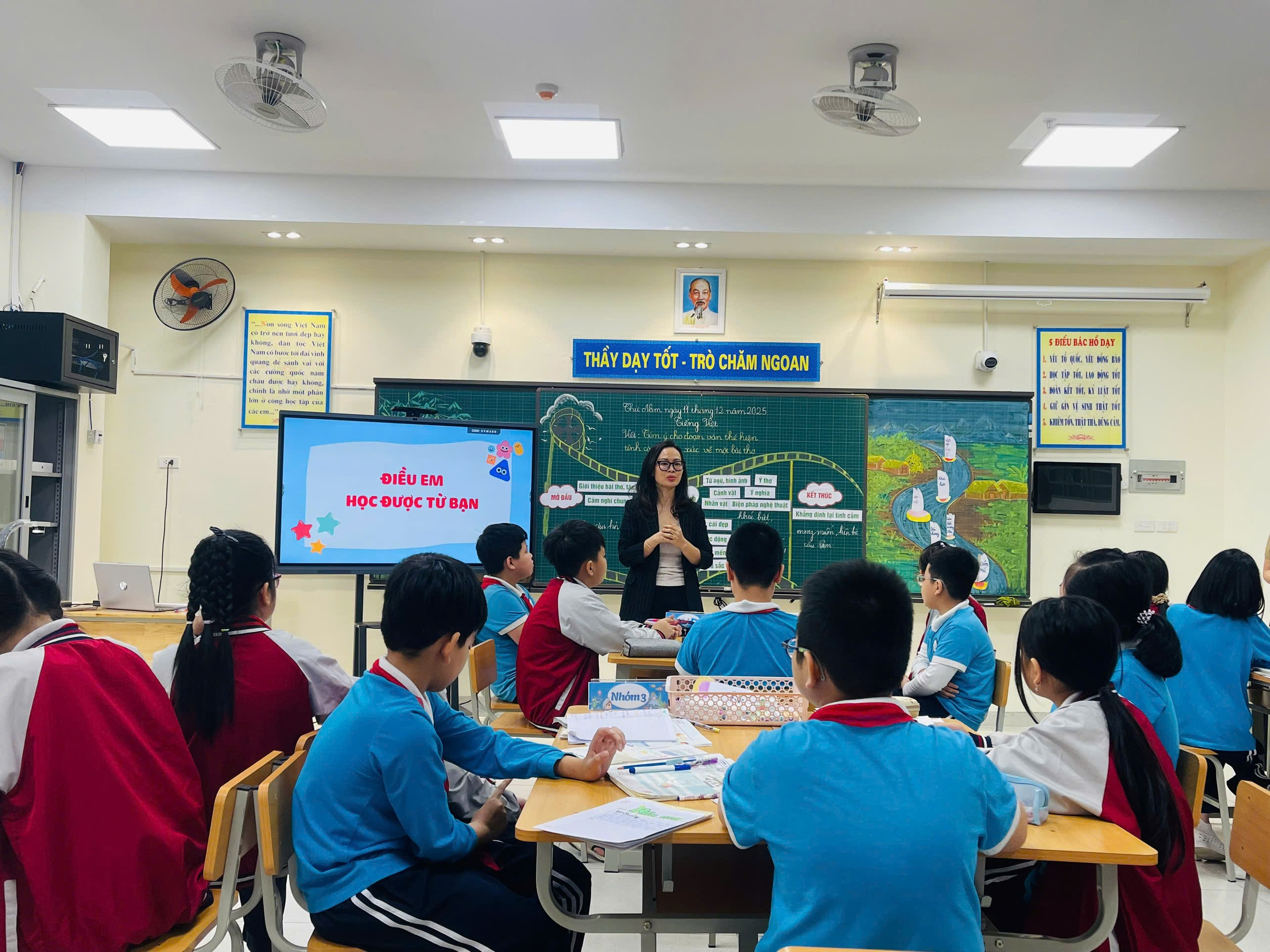 Sáng ngày 11/12, cô giáo Nguyễn Mai Phương cùng các em học sinh lớp 5 đã thực hiện một tiết học chuyên đề đặc biệt của môn Tiếng Việt với bài dạy: “Tìm ý cho bài văn thể hiện tình cảm, cảm xúc về một bài thơ”. Không chỉ là một giờ học thông thường, tiết chuyên đề đã mang đến cho học sinh một hoạt động trải nghiệm giàu tính sáng tạo, góp phần phát triển năng lực tư duy và bồi dưỡng tình yêu văn học.