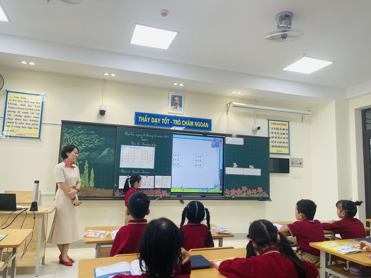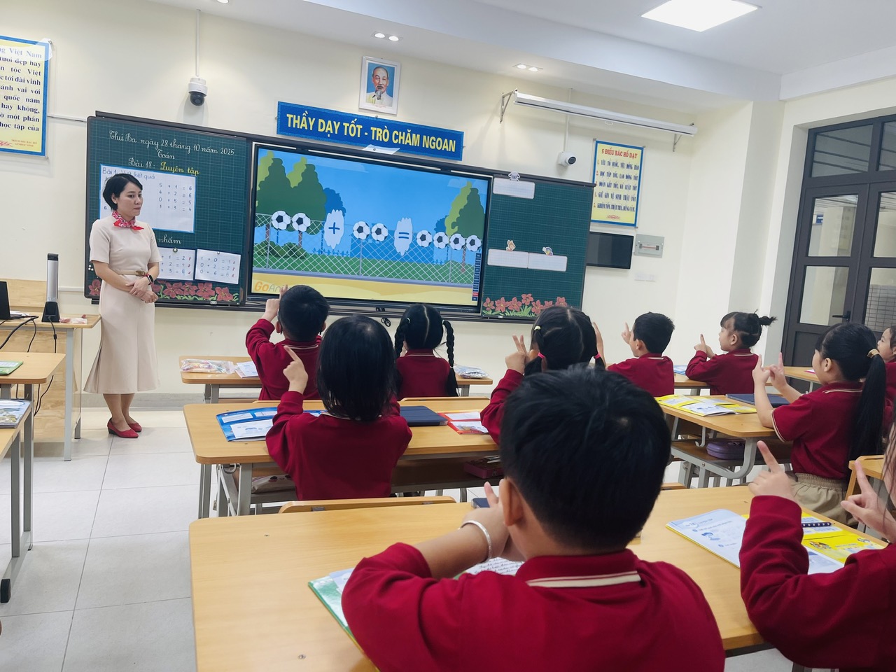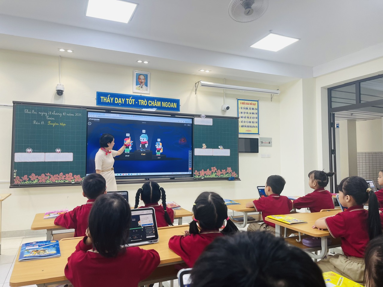 Không khí lớp học luôn sôi nổi, tươi vui, học sinh chủ động, tự giác thực hiện nhiệm vụ. Việc kết hợp thiết bị số với phương pháp dạy học tích cực đã góp phần nâng cao hiệu quả và chất lượng giờ học Toán, tạo hứng khởi cho cả cô và trò.