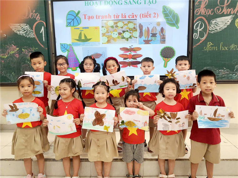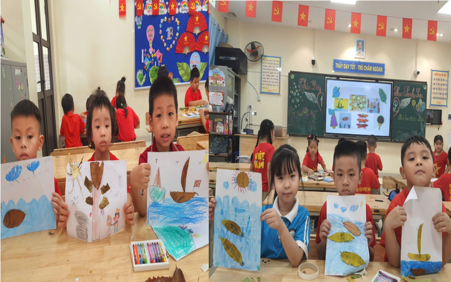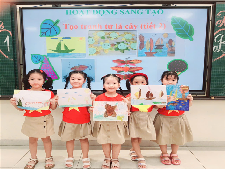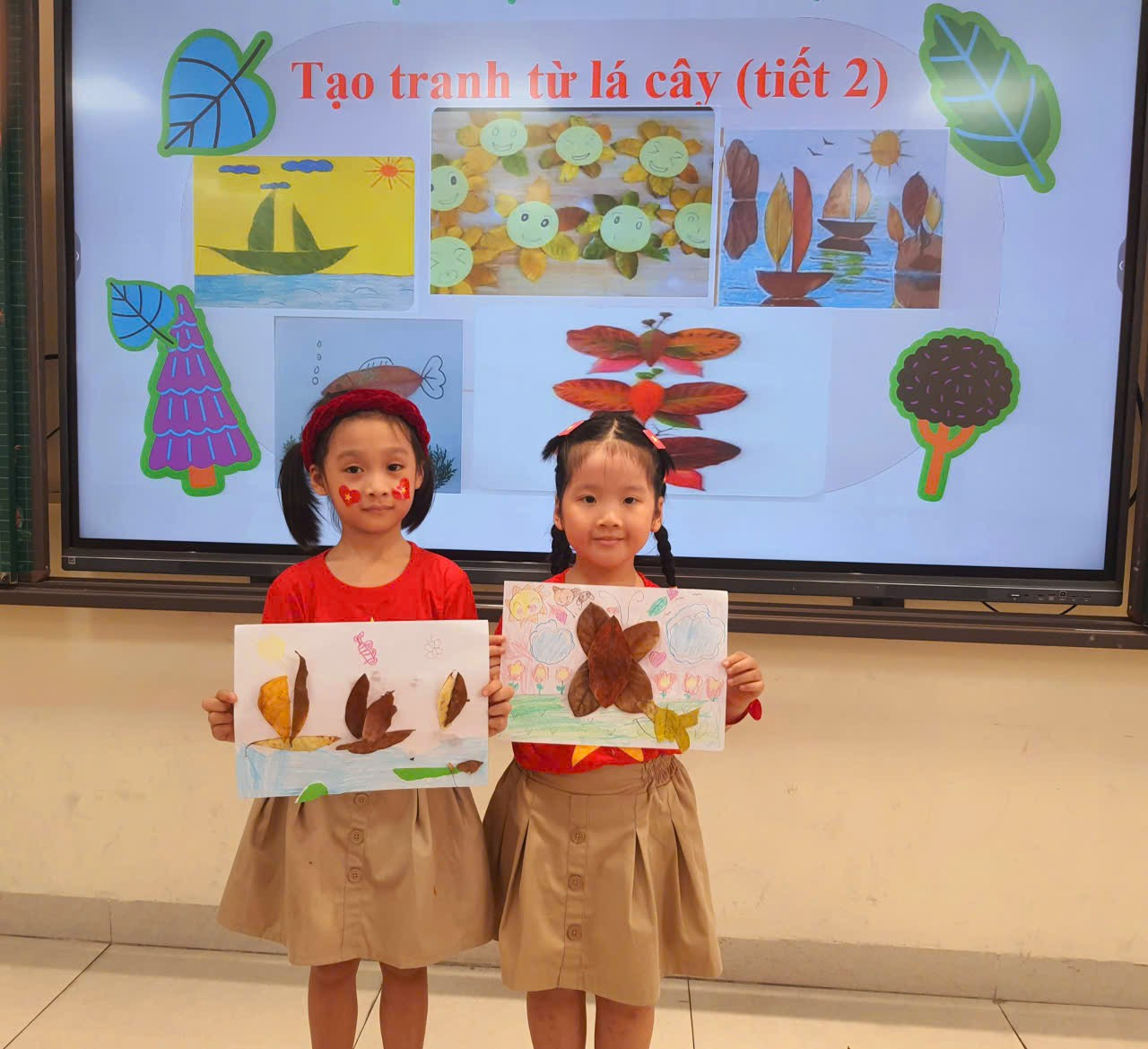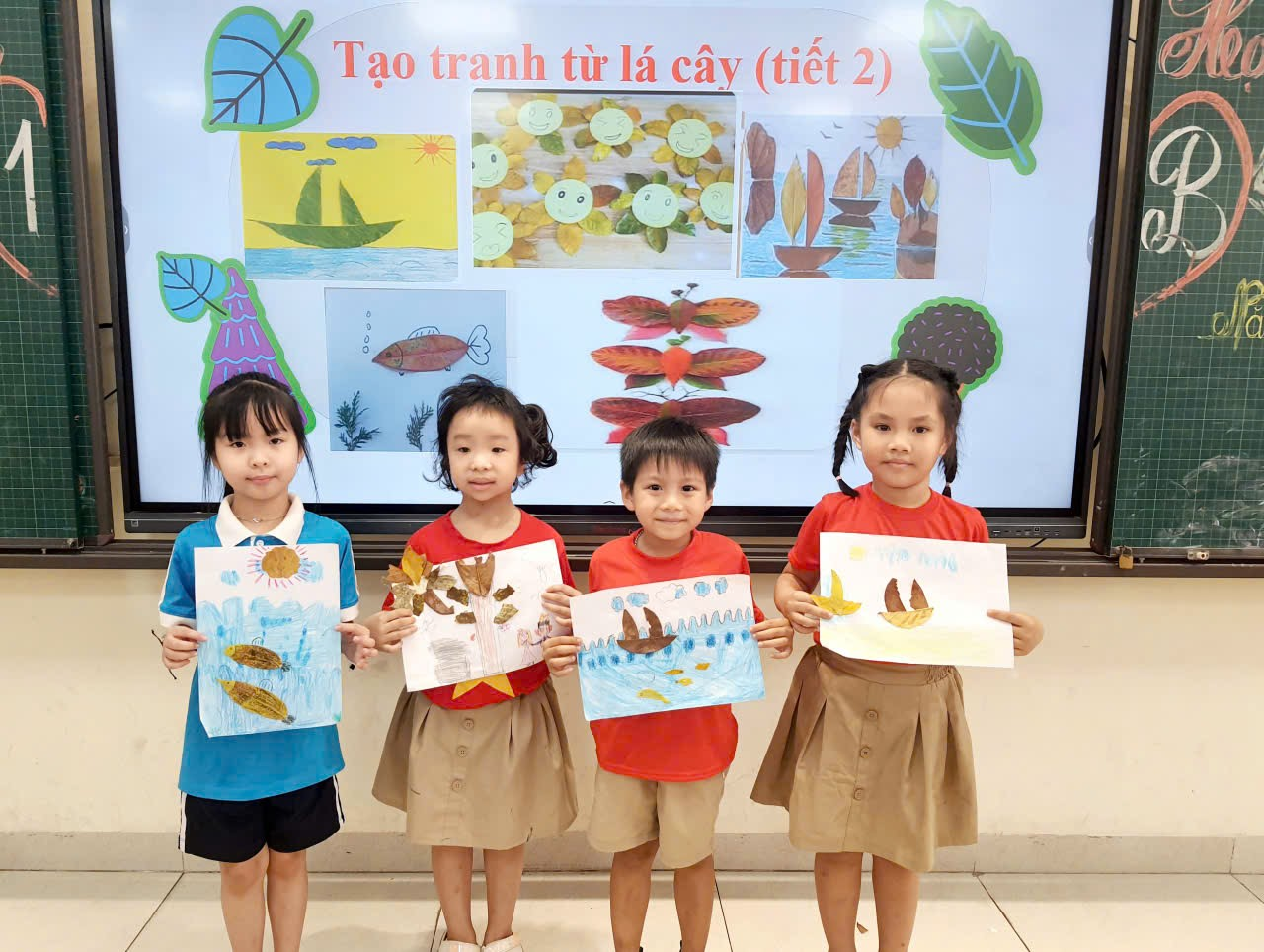 Dưới sự hướng dẫn tận tình của cô giáo chủ nhiệm, các em học sinh đã cùng nhau khám phá vẻ đẹp của thiên nhiên qua những chiếc lá nhỏ xinh – những vật liệu tưởng chừng đơn giản nhưng lại chứa đựng biết bao điều thú vị. Từ đó, các em được tự do sáng tạo nên những bức tranh độc đáo và giàu cảm xúc. Đây không chỉ là một tiết học thủ công đơn thuần, mà còn là hành trình nuôi dưỡng sự quan sát, trí tưởng tượng và tình yêu thiên nhiên ngay từ những năm học đầu tiểu học.
