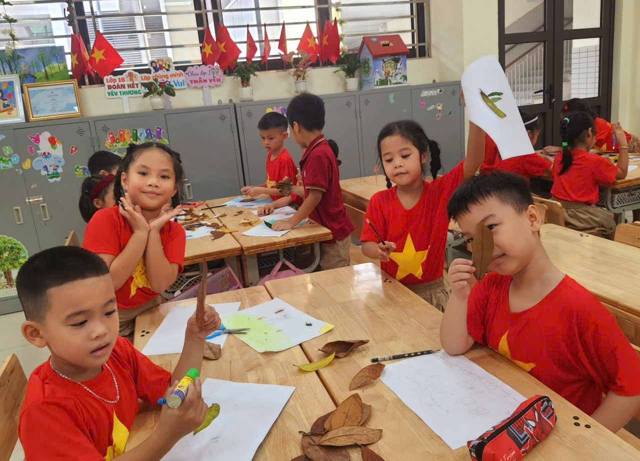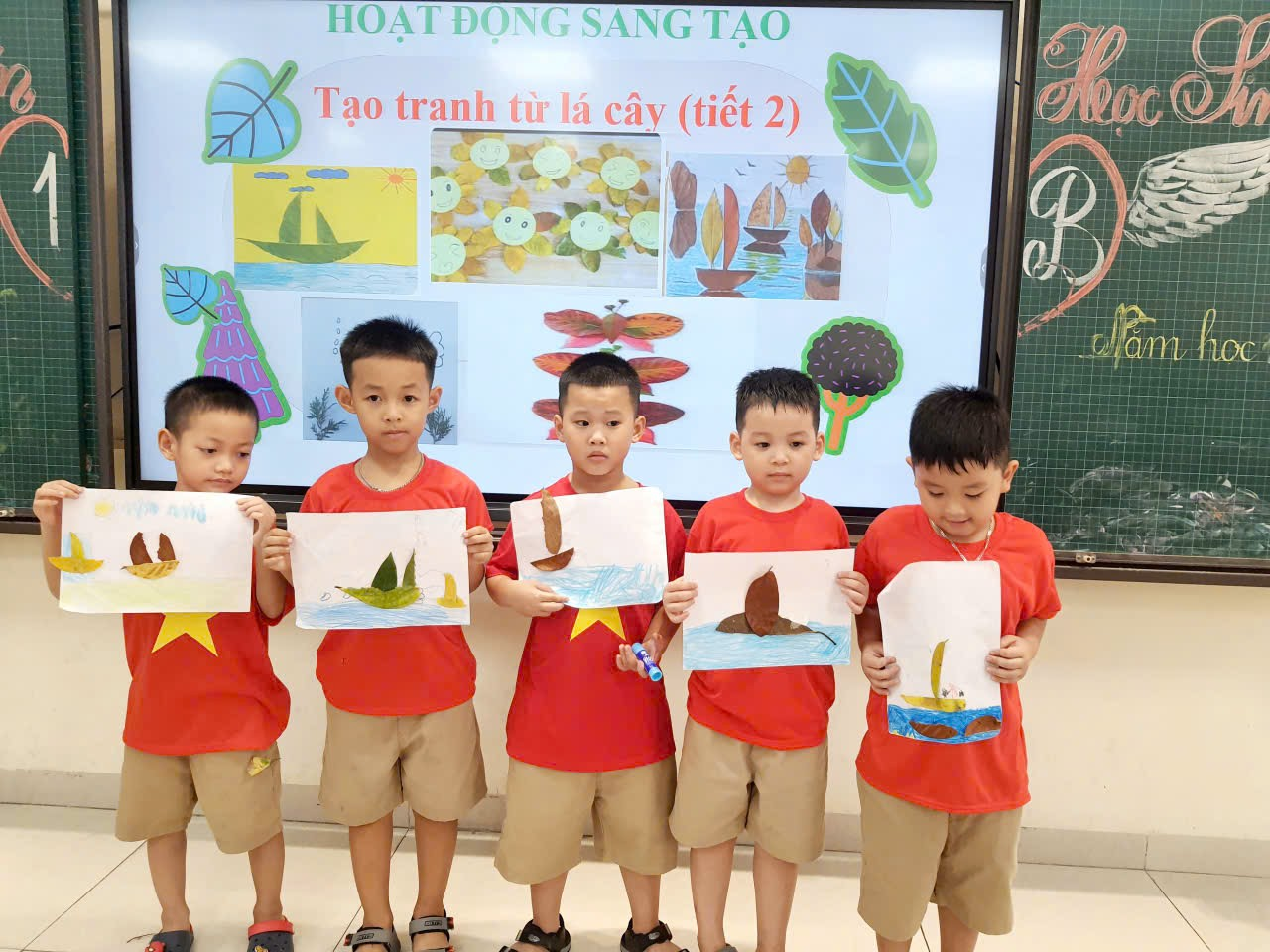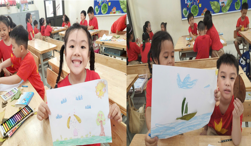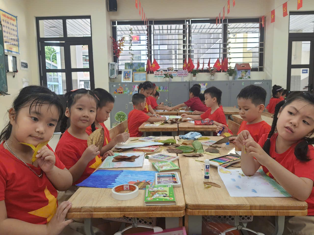 Dưới sự hướng dẫn tận tình của cô giáo chủ nhiệm, các em học sinh đã cùng nhau khám phá vẻ đẹp của thiên nhiên qua những chiếc lá nhỏ xinh – những vật liệu tưởng chừng đơn giản nhưng lại chứa đựng biết bao điều thú vị. Từ đó, các em được tự do sáng tạo nên những bức tranh độc đáo và giàu cảm xúc. Đây không chỉ là một tiết học thủ công đơn thuần, mà còn là hành trình nuôi dưỡng sự quan sát, trí tưởng tượng và tình yêu thiên nhiên ngay từ những năm học đầu tiểu học.
