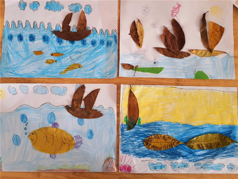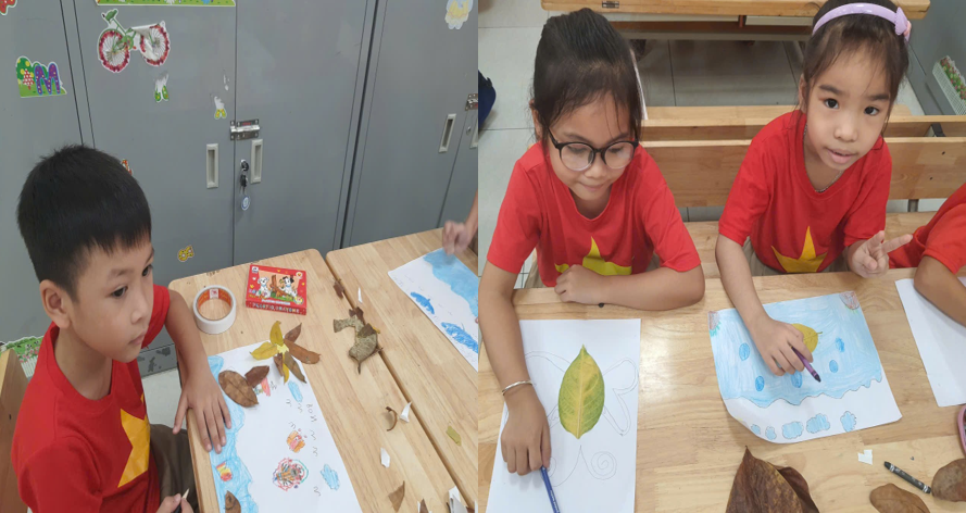 Không cần những dụng cụ cầu kỳ hay nguyên vật liệu phức tạp, các con chỉ cần những chiếc lá cây nhặt được trong sân trường, góc vườn, hay mang theo từ nhà. Từ đó, các con thỏa sức sáng tạo với bàn tay khéo léo trí tưởng tượng phong phú làm nên những tác phẩm ngộ nghĩnh: chiếc thuyền giữa biền khơi, con cá bơi bội tung tăng, bông hoa, con bướm hay những hình ảnh quen thuộc trong cuộc sống hàng ngày.