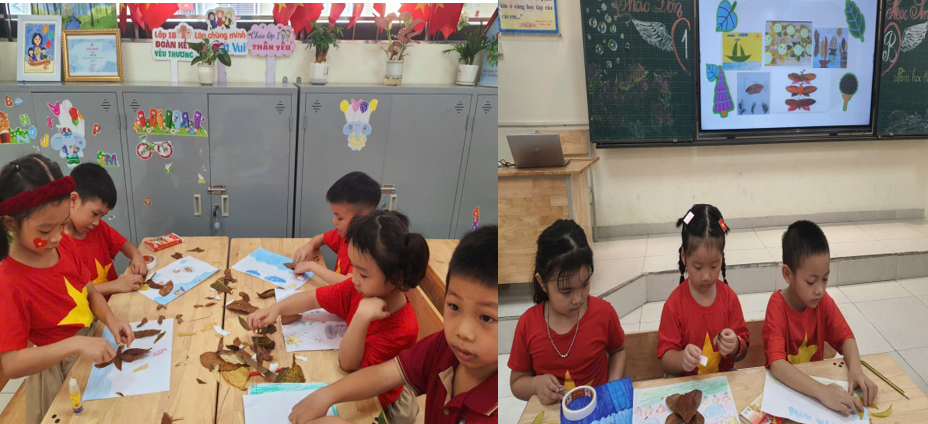 Em yêu thiên nhiên – Tạo hình cùng chiếc lá. Hoạt động sáng tạo của các con học sinh lớp 1B trường Tiểu học Thủ lệ.