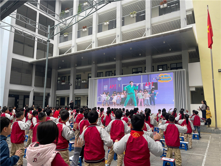 Học sinh tham gia khởi động cùng vũ điệu APT