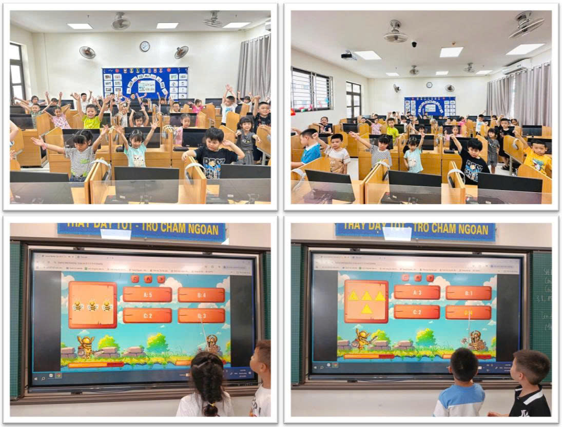 Học sinh lớp 1A trong giờ Ngoại ngữ và Tin học.