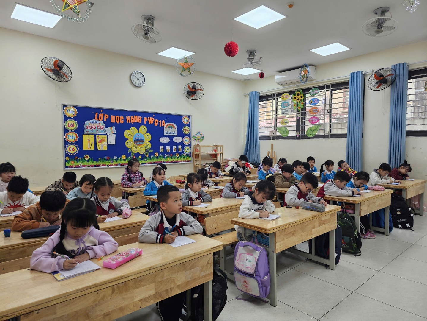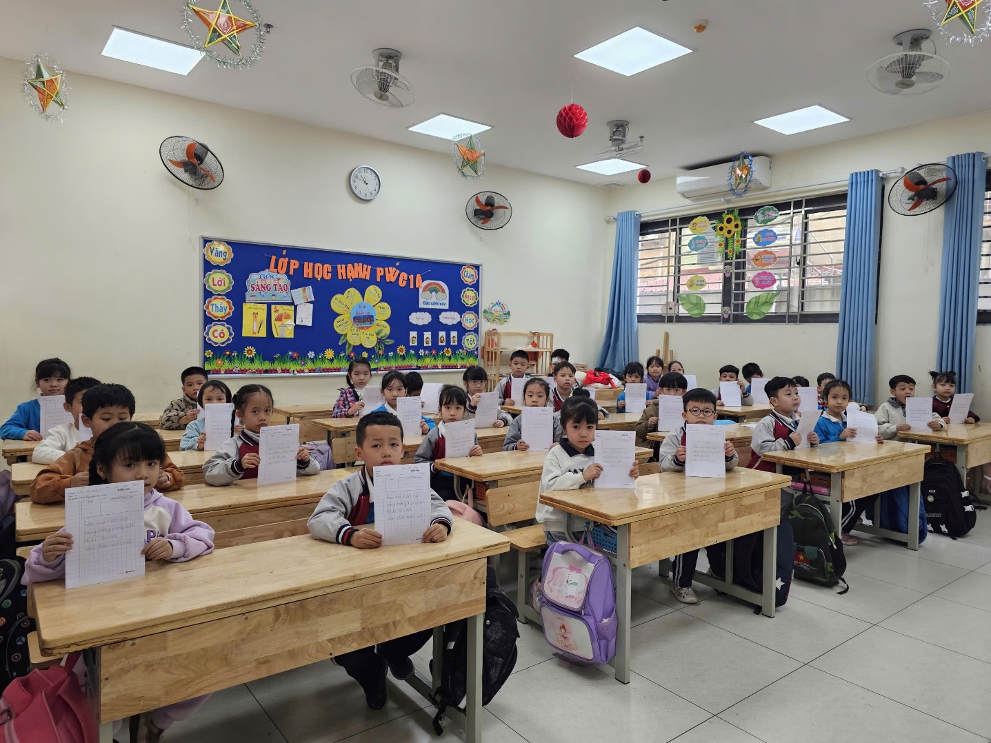 Trong khuôn khổ các hoạt động giáo dục của nhà trường, phần thể hiện chữ viết của học sinh lớp 1A đã diễn ra trong không khí nhẹ nhàng và đầy cảm xúc. Với học sinh lớp Một, mỗi nét chữ tròn đều, thẳng hàng là kết quả của quá trình rèn luyện kiên trì, từ tư thế ngồi, cách cầm bút đến ý thức giữ gìn vở sạch, chữ đẹp.