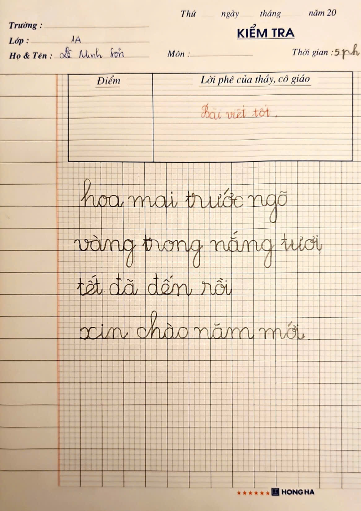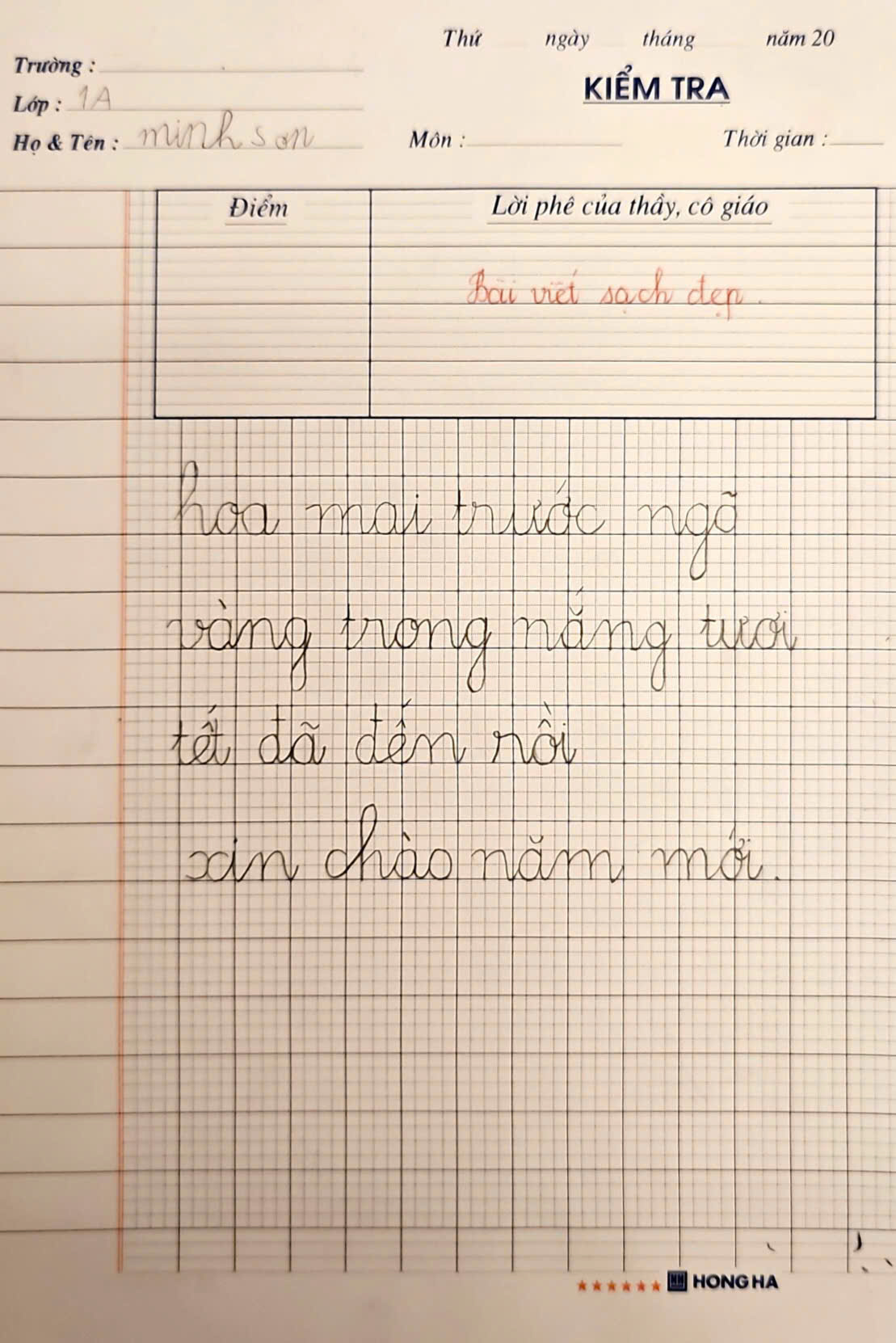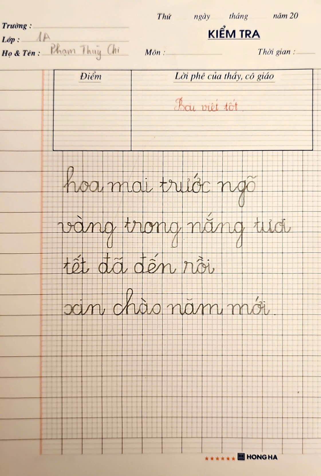 Phần thể hiện chữ viết cũng thể hiện sự tận tâm của giáo viên trong việc uốn nắn từng nét chữ, sự đồng hành của phụ huynh trong việc tạo nề nếp học tập cho các em ngay từ những ngày đầu đến trường.