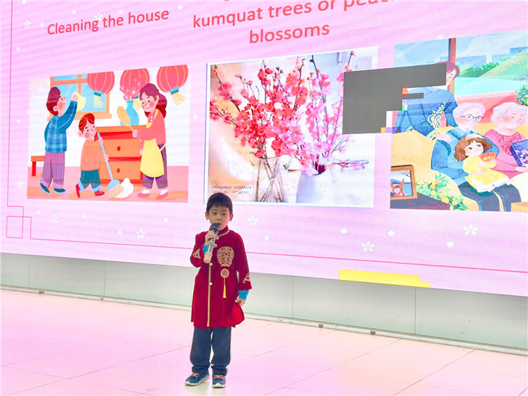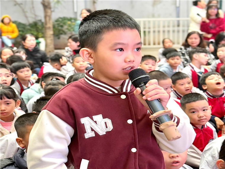Bạn Nguyễn Gia Khánh - lớp 1C tự tin trình bày phần thuyết trình về chủ đề “Năm mới”