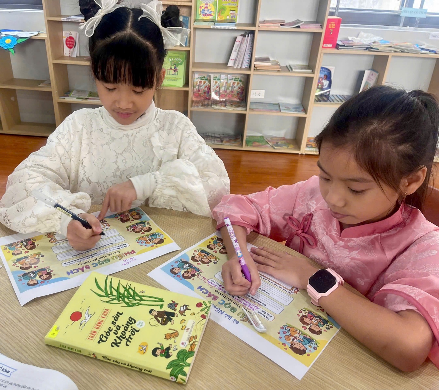 Sau đó, học sinh cả lớp đã ghi chép cảm nhận bằng “Phiếu đọc sách” do cô chủ nhiệm thiết kế với những hình ảnh sinh động, phù hợp với nội dung phần đọc mở rộng.