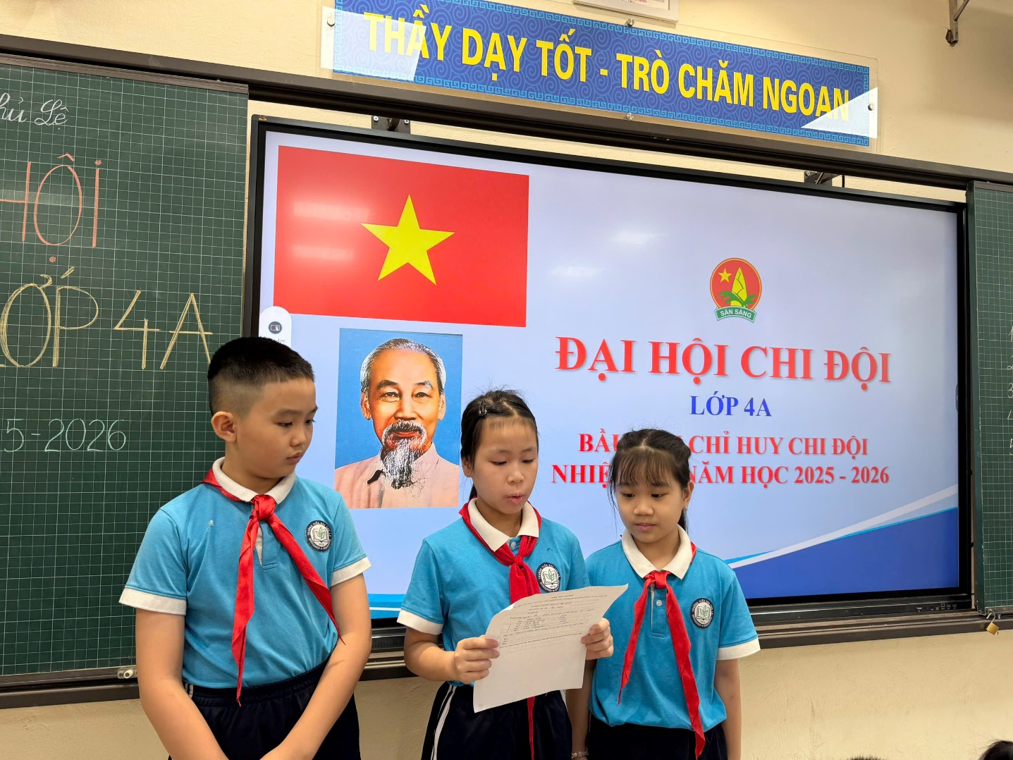 Với tinh thần dân chủ, đoàn kết, trách nhiệm, đại hội đã bầu ra Ban Chỉ huy Chi đội mới gồm 3 bạn: Dương Thục Anh, Đào Hương Giang, Nguyễn Kim Ngân - những bạn đội viên gương mẫu, năng nổ và nhiệt tình, hứa hẹn sẽ đưa phong trào Chi đội 4A ngày càng phát triển vững mạnh.