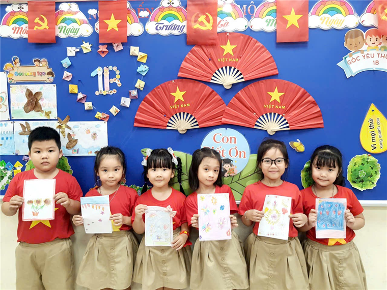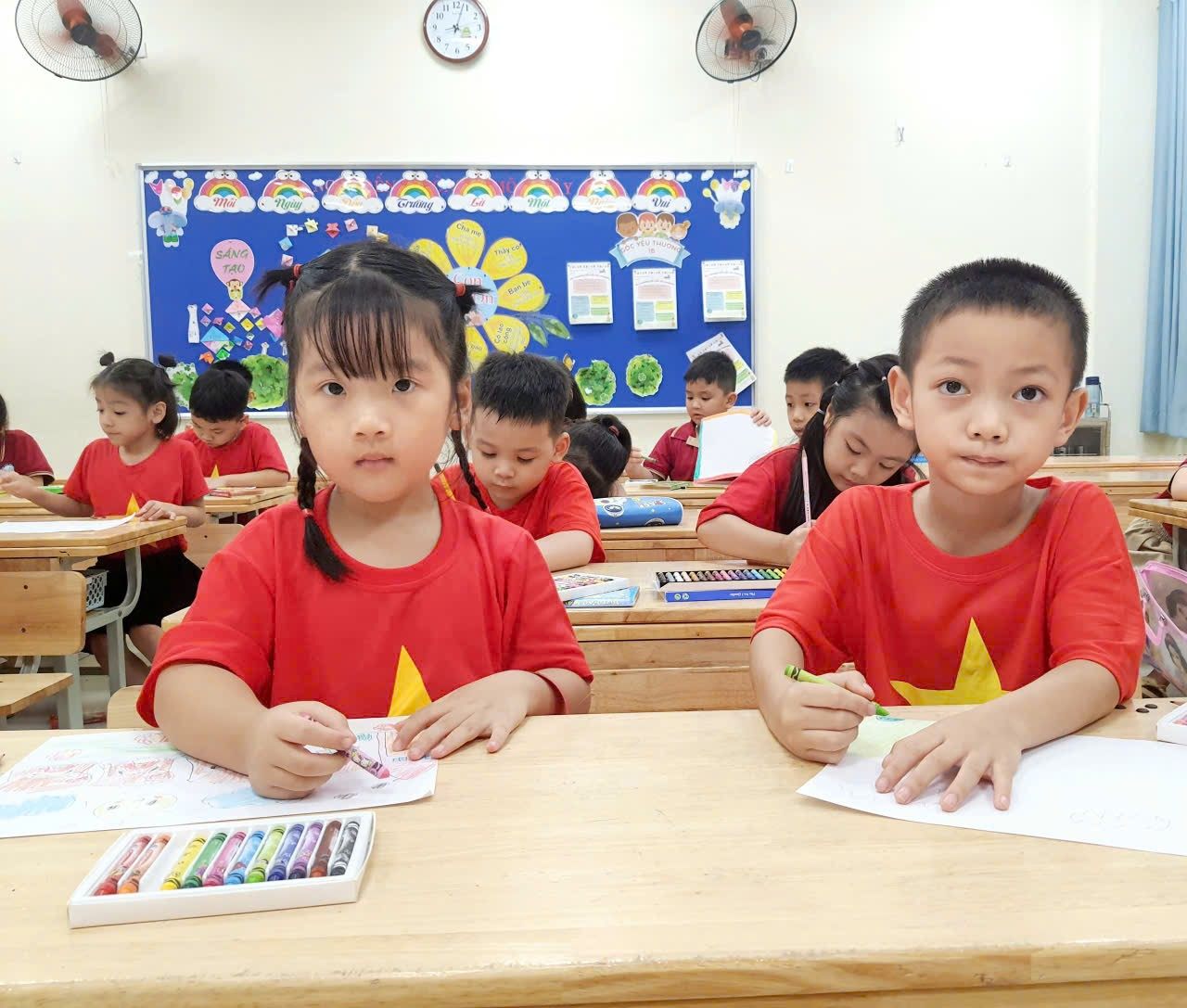 Với tất cả sự hồn nhiên, trong sáng và lòng biết ơn non trẻ, các con đã cùng nhau bày tỏ tình yêu Tổ quốc qua những hoạt động nhỏ nhưng đầy ý nghĩa – từ những bức tranh rực rỡ sắc màu, đến lời hát, ánh mắt và niềm tự hào khi nhìn lá cờ bay phấp phới trong sân trường.