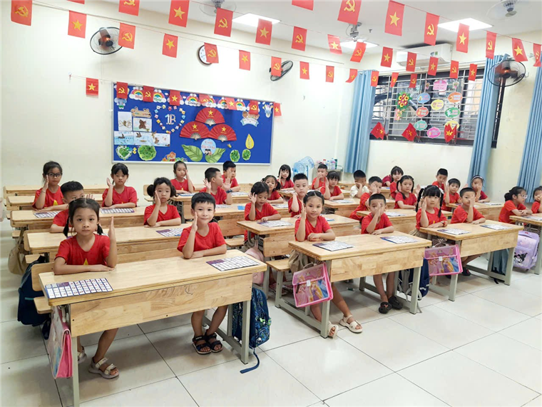 Với các con học sinh lớp 1B – Trường Tiểu học Thủ Lệ, đây là lần đầu tiên các con đón ngày Quốc khánh trong một môi trường học tập mới – đầy yêu thương, ấm áp và cũng thật trang nghiêm. Lớp học 1B như khoác lên mình chiếc áo mới rực rỡ sắc đỏ vàng – màu của Quốc kỳ. Những lá cờ nhỏ bay bay bên cửa sổ. Những khẩu hiệu, hình ảnh cùng các sản phẩm thủ công của học sinh tạo nên không gian học tập sinh động, đầy cảm hứng. Đặc biệt, trong những tiết học chào mừng Quốc khánh, các bạn học sinh lớp 1B đã cùng nhau mặc áo cờ đỏ sao vàng, ngồi ngay ngắn trong lớp với ánh mắt háo hức tự hào.