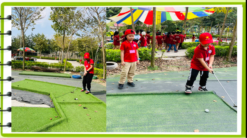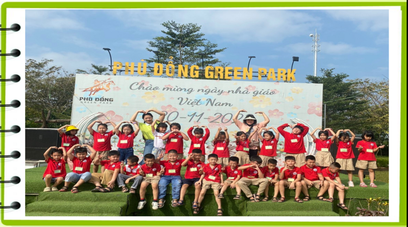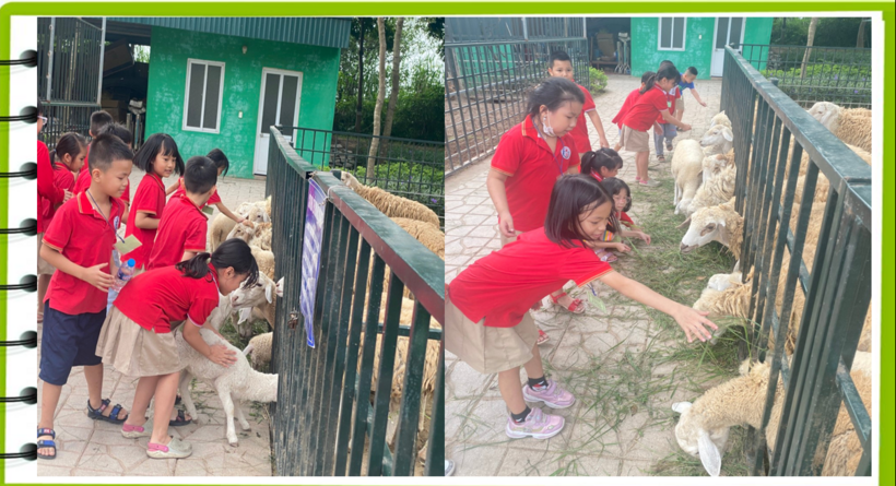 Đến nơi, các bạn được anh chị hướng dẫn viên đưa đi tham quan trang trại. Chao ôi! Phong cảnh ở đây thật đẹp, không gian thoáng mát, trong lành. Đến với Phù Đổng Green Park các bạn nhỏ được hòa mình với thiên nhiên, nơi đây không chỉ có những trải nghiệm thú vị mà nó còn đưa chúng ta vào thế giới của muôn vàn các loài hoa. Đầu tiên khi đến với trang trại, các bạn được tự tay chăm sóc những chú dê. Ôi! Cảm xúc khó tả khi lần đầu tiên được chạm vào bộ lông mềm mại của chú dê trắng , có bạn thì hớn hở vui vẻ thích thú, có bạn lại rụt rè vì cảm thấy hơi sợ một chút.