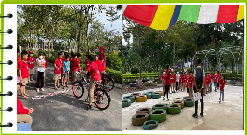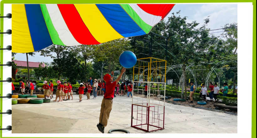 Tiếp đến các bạn tham gia các trò chơi như xích đu, bập bênh, đu quay, đạp xe cùng nhau vượt qua chướng ngại vật và tham gia trò chơi vận động… những tiếng cười giòn tan rất vui vẻ.