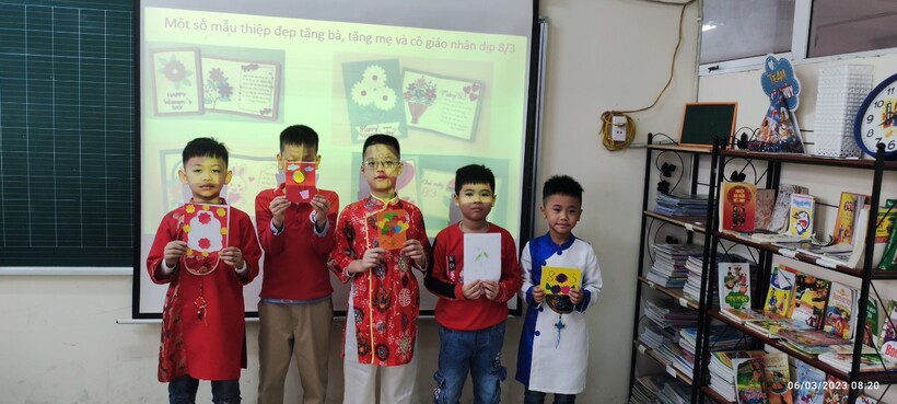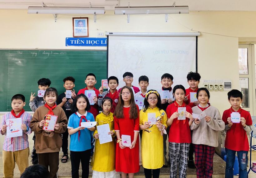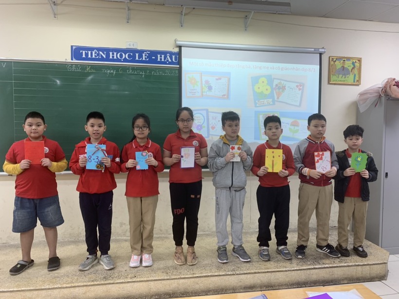 Nằm trong chuỗi hoạt động chào mừng kỷ niệm ngày 8/3, học sinh toàn trường cũng đã tham gia chương trình "Gửi lời yêu thương" nhằm gửi những lời chúc tới các bà, các mẹ và các cô giáo của mình. Bằng sự khéo léo các con đã cùng tạo lên những tấm thiệp vô cùng đáng yêu và gửi vào đó những yêu thương.