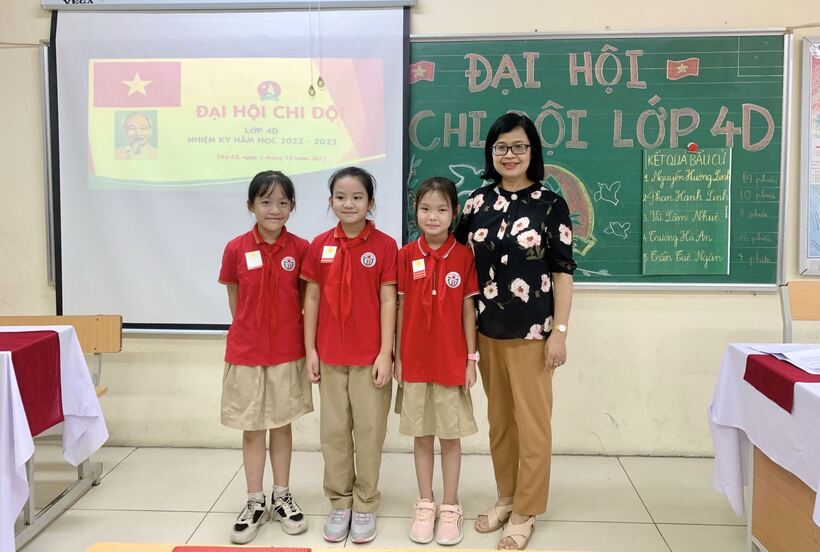 Giáo viên chủ nhiệm và Ban Chỉ huy Chi đội lớp 4D
