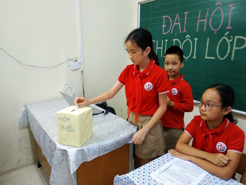 Đội viên Chi đội 4C bỏ phiếu bầu Ban Chỉ huy Chi đội nhiệm kỳ mới