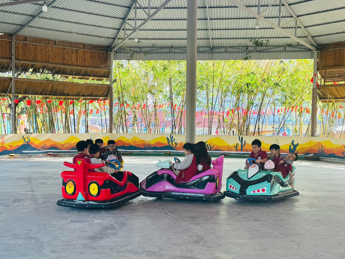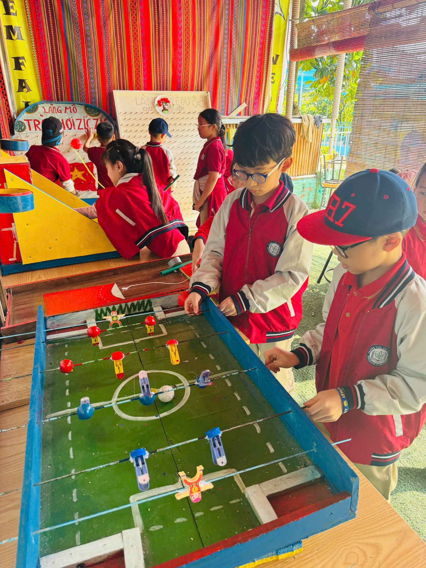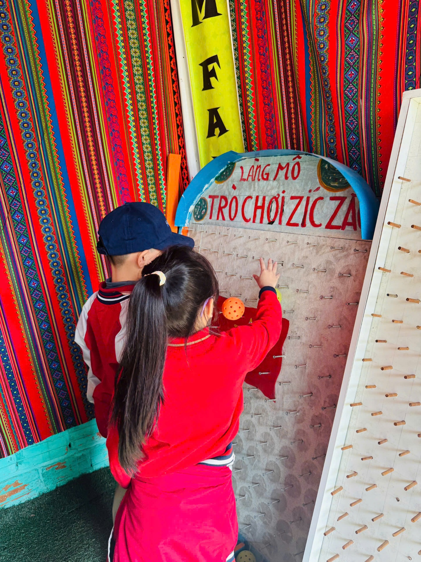 Từ sáng sớm, các bạn nhỏ lớp 4A đã háo hức tập trung tại trường, ổn định đội hình và lên xe cùng thầy cô, HDV du lịch. Không khí rộn ràng, ánh mắt háo hức của các em báo hiệu một ngày trải nghiệm thật đáng nhớ. Tại Làng Mô, học sinh lớp 4A được hòa mình vào hàng loạt hoạt động hấp dẫn như: Nặn bánh trôi – tô màu – làm đồ thủ công, khám phá thế giới STEM. Ngoài ra, các bạn học sinh còn được thử sức với các hoạt động vận động: Chinh phục Zipline, chơi xe trượt, đi ô tô đụng hay Sasuke nhí “Không giới hạn”, kéo co…