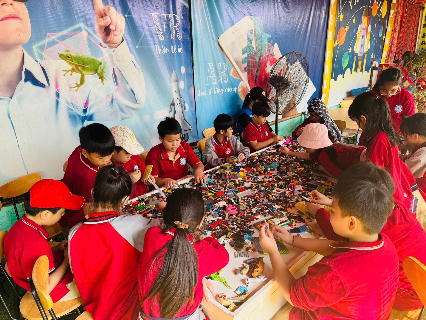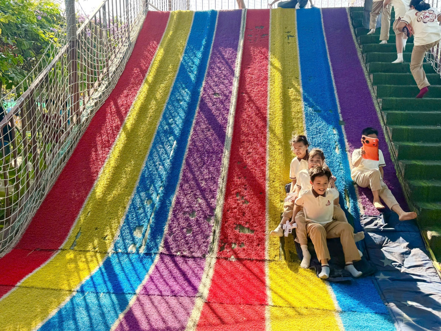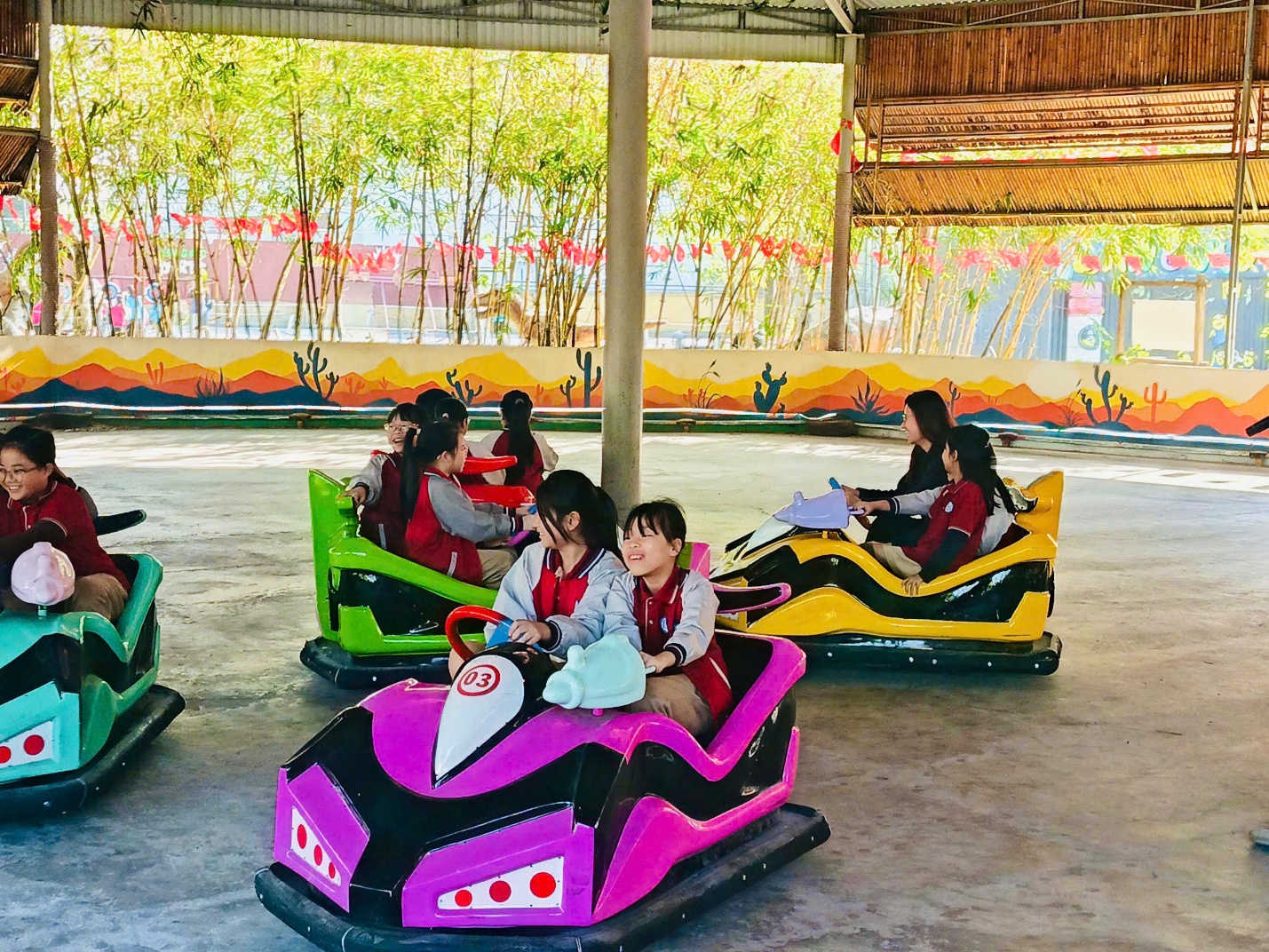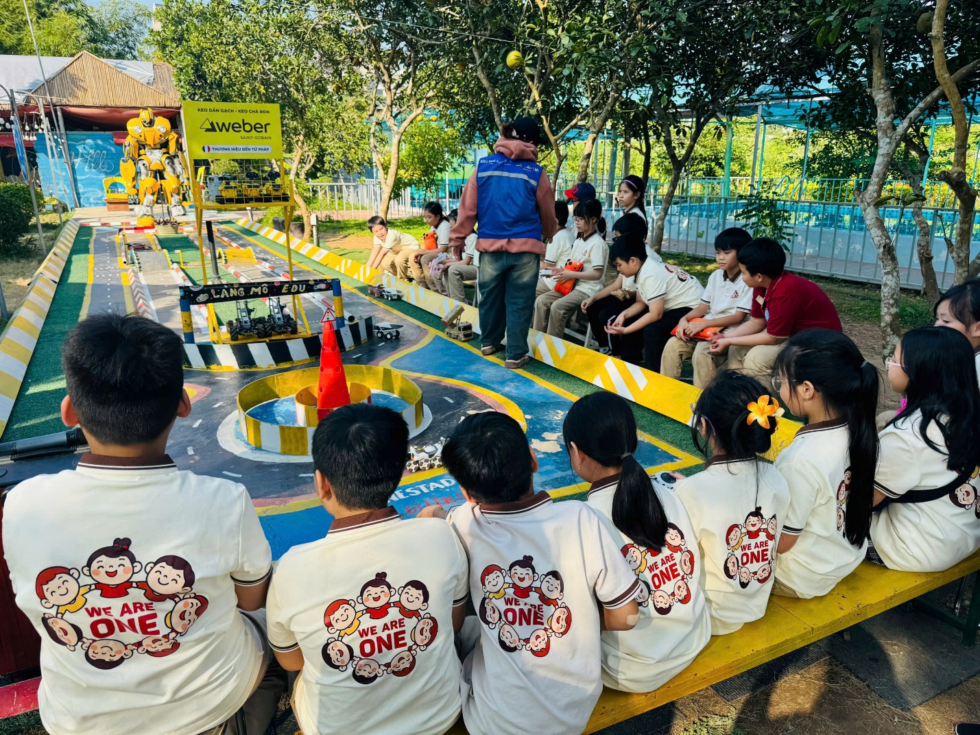 Từ sáng sớm, các bạn nhỏ lớp 4A đã háo hức tập trung tại trường, ổn định đội hình và lên xe cùng thầy cô, HDV du lịch. Không khí rộn ràng, ánh mắt háo hức của các em báo hiệu một ngày trải nghiệm thật đáng nhớ. Tại Làng Mô, học sinh lớp 4A được hòa mình vào hàng loạt hoạt động hấp dẫn như: Nặn bánh trôi – tô màu – làm đồ thủ công, khám phá thế giới STEM. Ngoài ra, các bạn học sinh còn được thử sức với các hoạt động vận động: Chinh phục Zipline, chơi xe trượt, đi ô tô đụng hay Sasuke nhí “Không giới hạn”, kéo co…