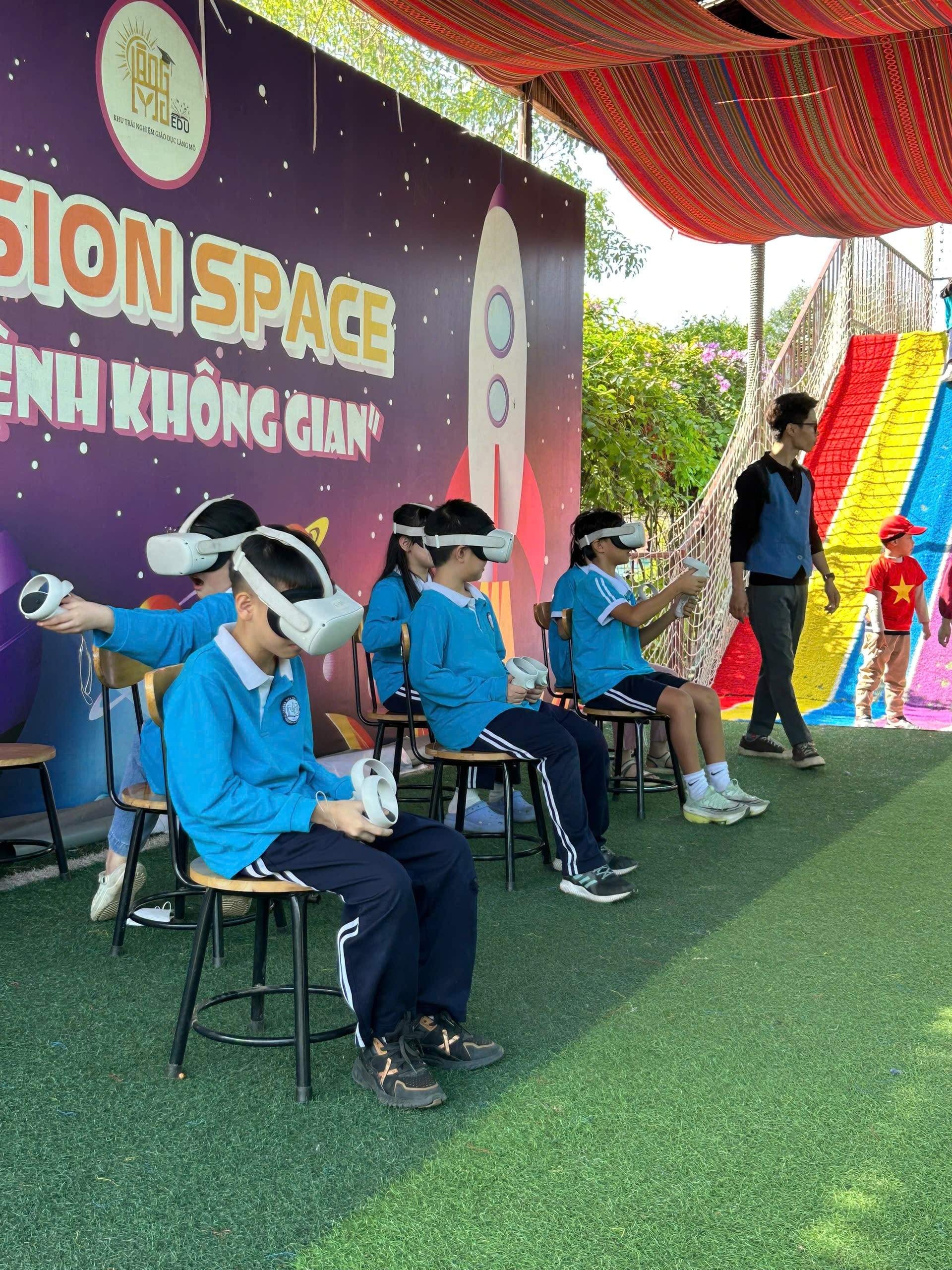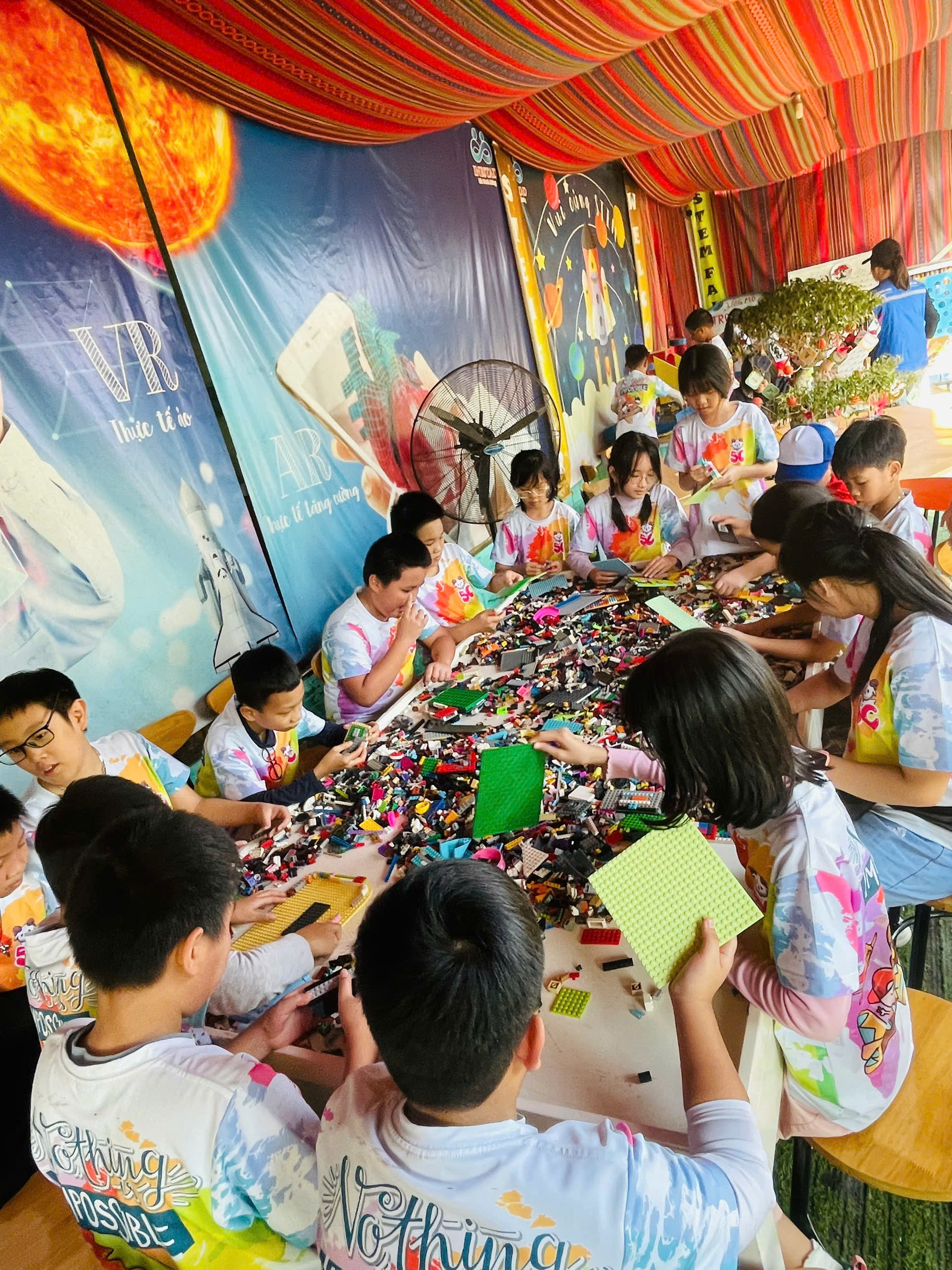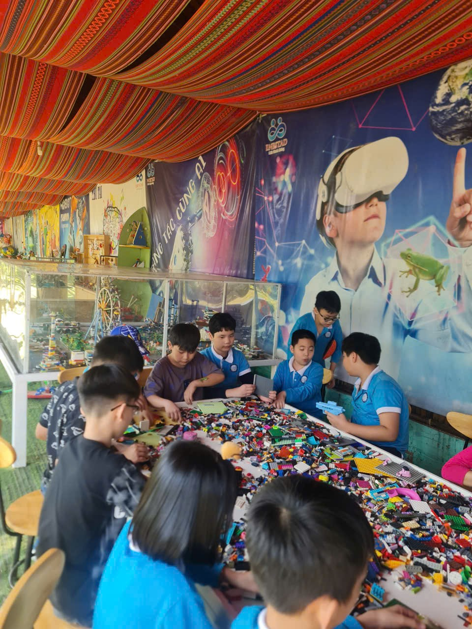 Tại khu STEMLab, các bạn học sinh được hóa thân thành “nhà khoa học nhí”, tự tay lắp ráp mô hình Lego, điều khiển Robot, trải nghiệm thực tế ảo VR, và tìm hiểu thế giới ảo 360°. Hoạt động giúp các con hiểu thêm về ứng dụng của khoa học, công nghệ và trí tuệ nhân tạo trong đời sống, đồng thời phát huy khả năng tư duy logic và sáng tạo.