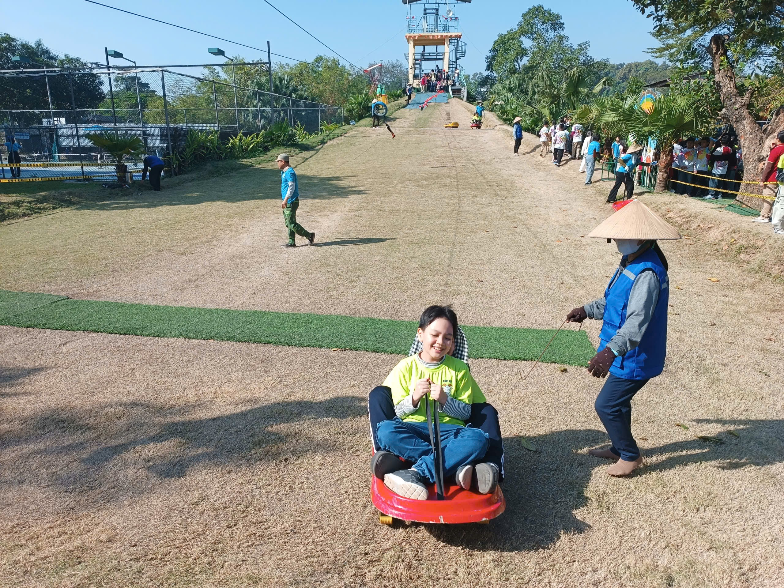 Buổi chiều, không khí tại khu vui chơi của Làng Mô thật náo nhiệt. Các con được tham gia nhiều hoạt động thể chất hấp dẫn như bơi lội, leo núi nhân tạo, trượt cỏ, đua xe điện, zipline, và Sasuke Việt Nam thu nhỏ. Những tiếng cười, tiếng cổ vũ vang lên không ngớt – minh chứng cho tinh thần đồng đội, lòng dũng cảm và niềm vui chiến thắng bản thân.