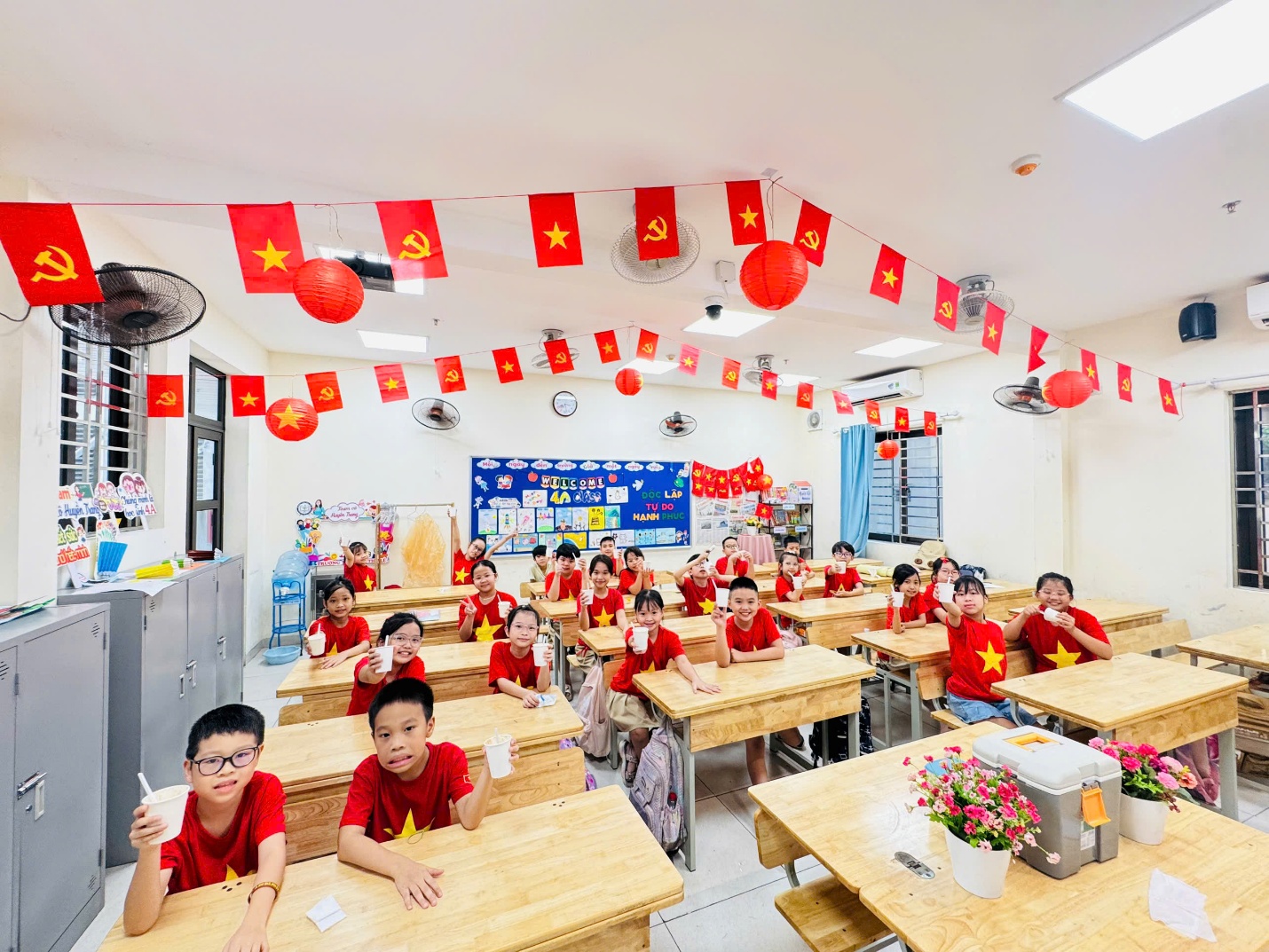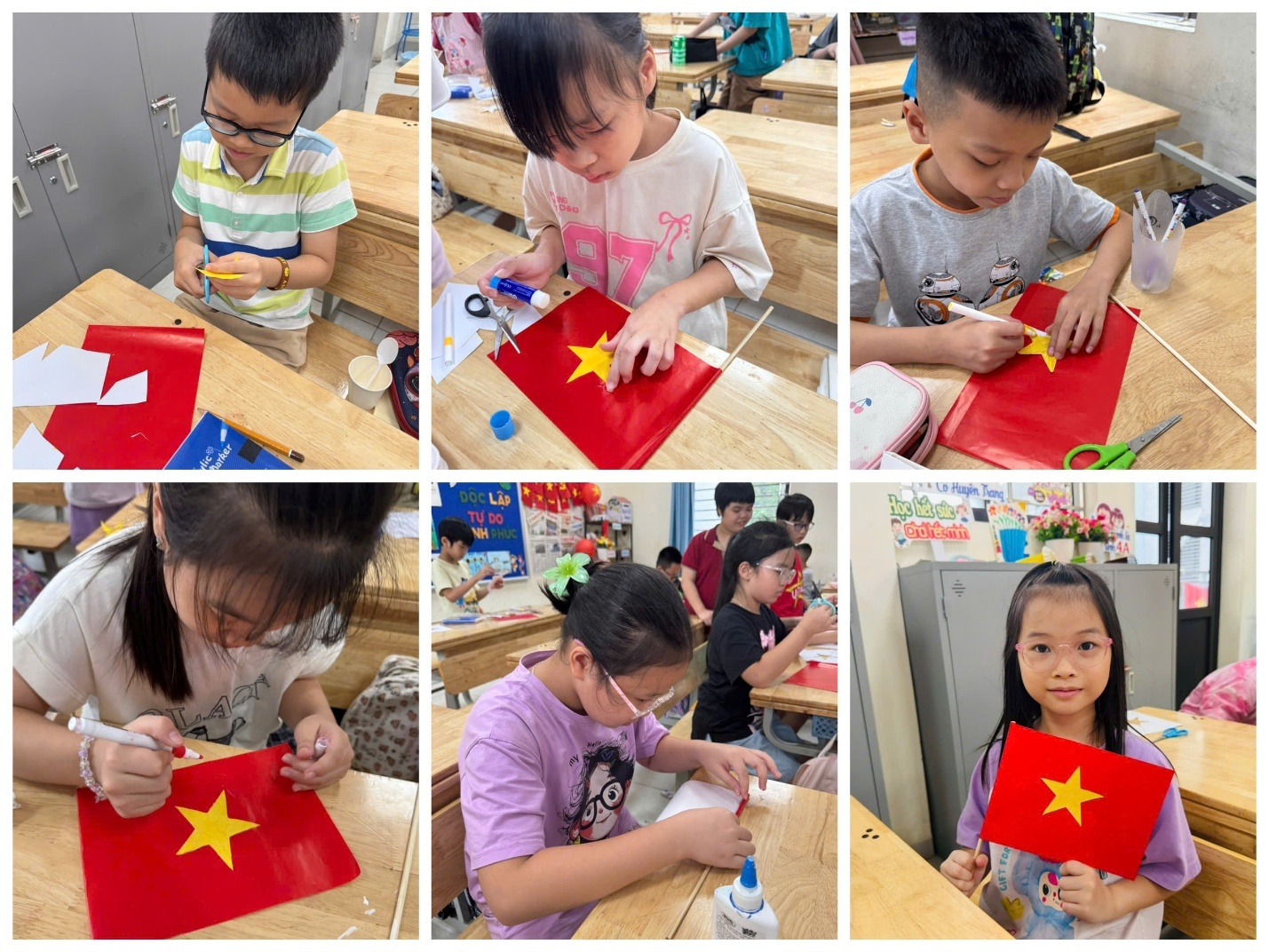 Ngay từ những ngày cuối tháng 8, các em học sinh đã hào hứng tham gia hoạt động làm cờ đỏ sao vàng. Với bàn tay khéo léo, từng tờ giấy đã được cắt, dán, trang trí để tạo nên những lá cờ rực rỡ sắc đỏ – biểu tượng thiêng liêng của Tổ quốc.