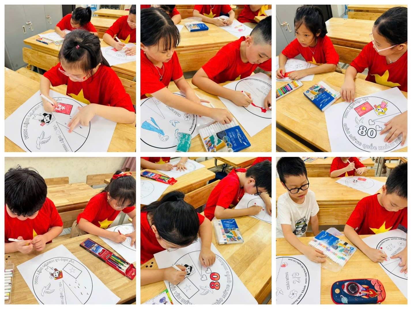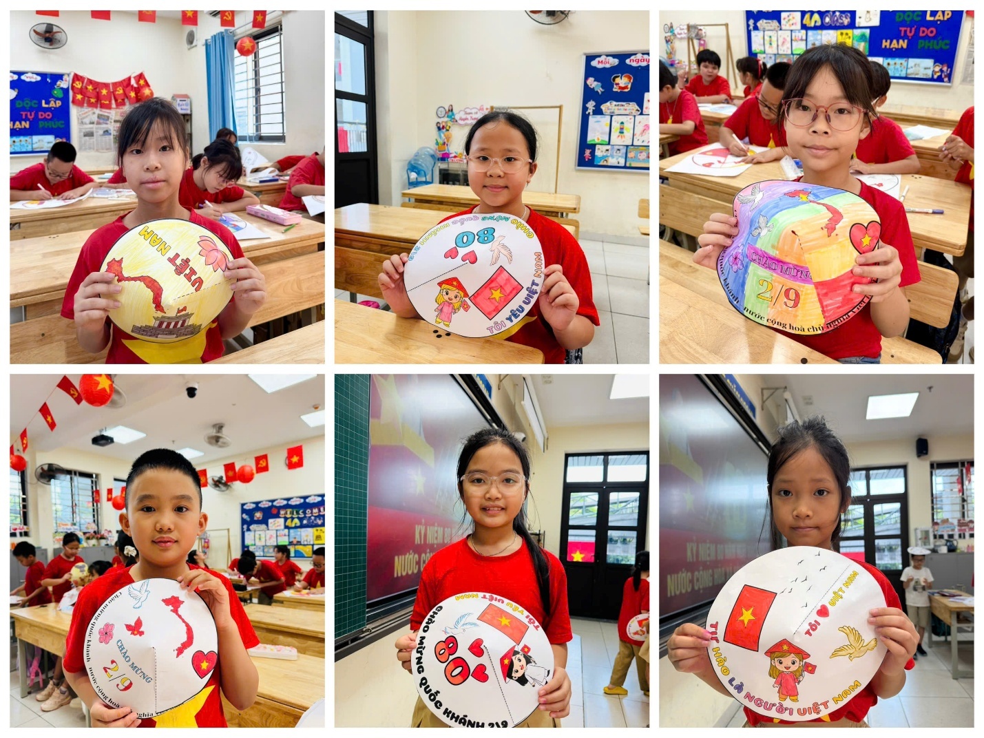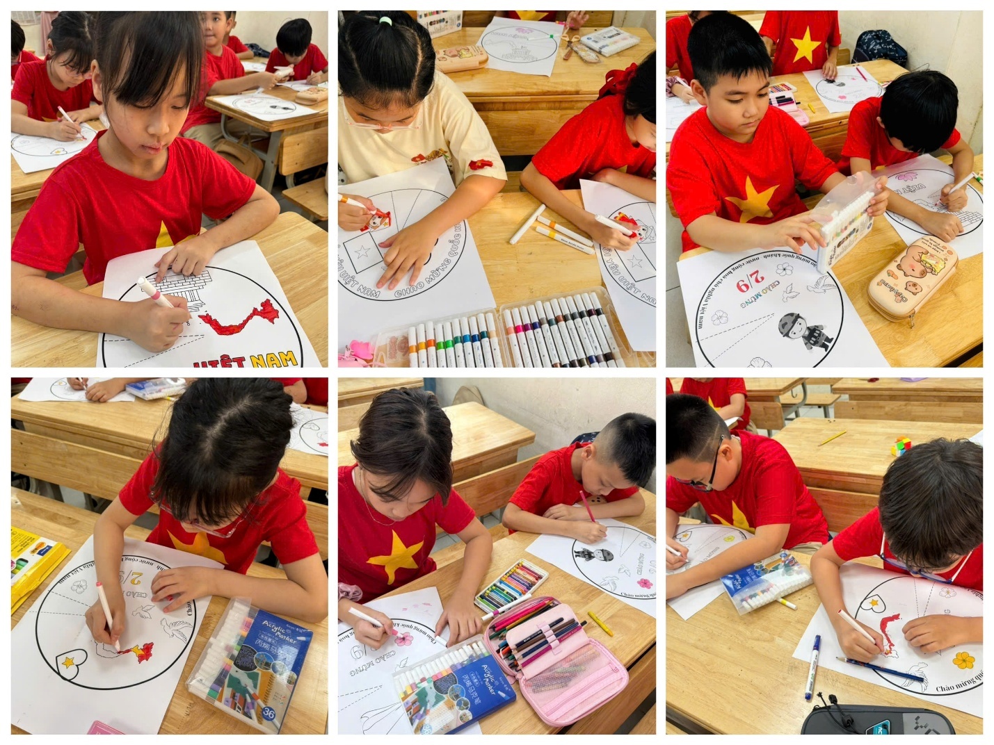 Không chỉ dừng lại ở đó, các em còn tích cực tham gia hoạt động vẽ tranh, làm nón trang trí chủ đề quê hương, đất nước Việt Nam. Những chiếc nón xinh xắn, đầy màu sắc không chỉ là sản phẩm thủ công ý nghĩa mà còn thể hiện niềm vui, tình yêu và niềm tự hào khi cùng nhau hướng về ngày lễ trọng đại của dân tộc.