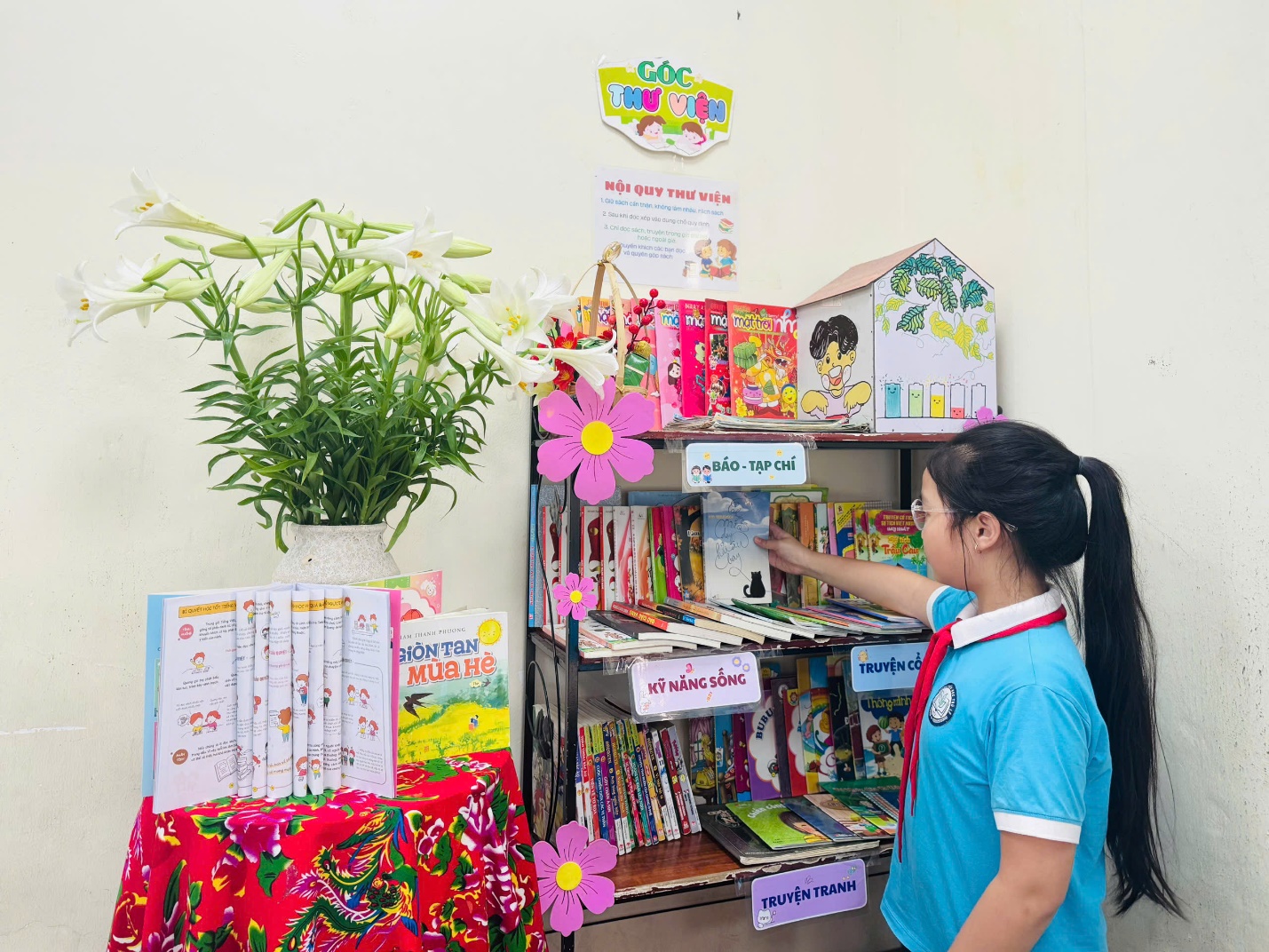 Đặc biệt, phong trào đọc sách mỗi ngày được duy trì tích cực. Nhiều em học sinh đã hình thành thói quen đọc sách trong giờ ra chơi và sau giờ học. Bên cạnh đó, các em còn nhiệt tình ủng hộ sách, truyện cho thư viện trường và lớp, góp phần làm giàu thêm nguồn tài liệu học tập và giải trí cho bạn bè.