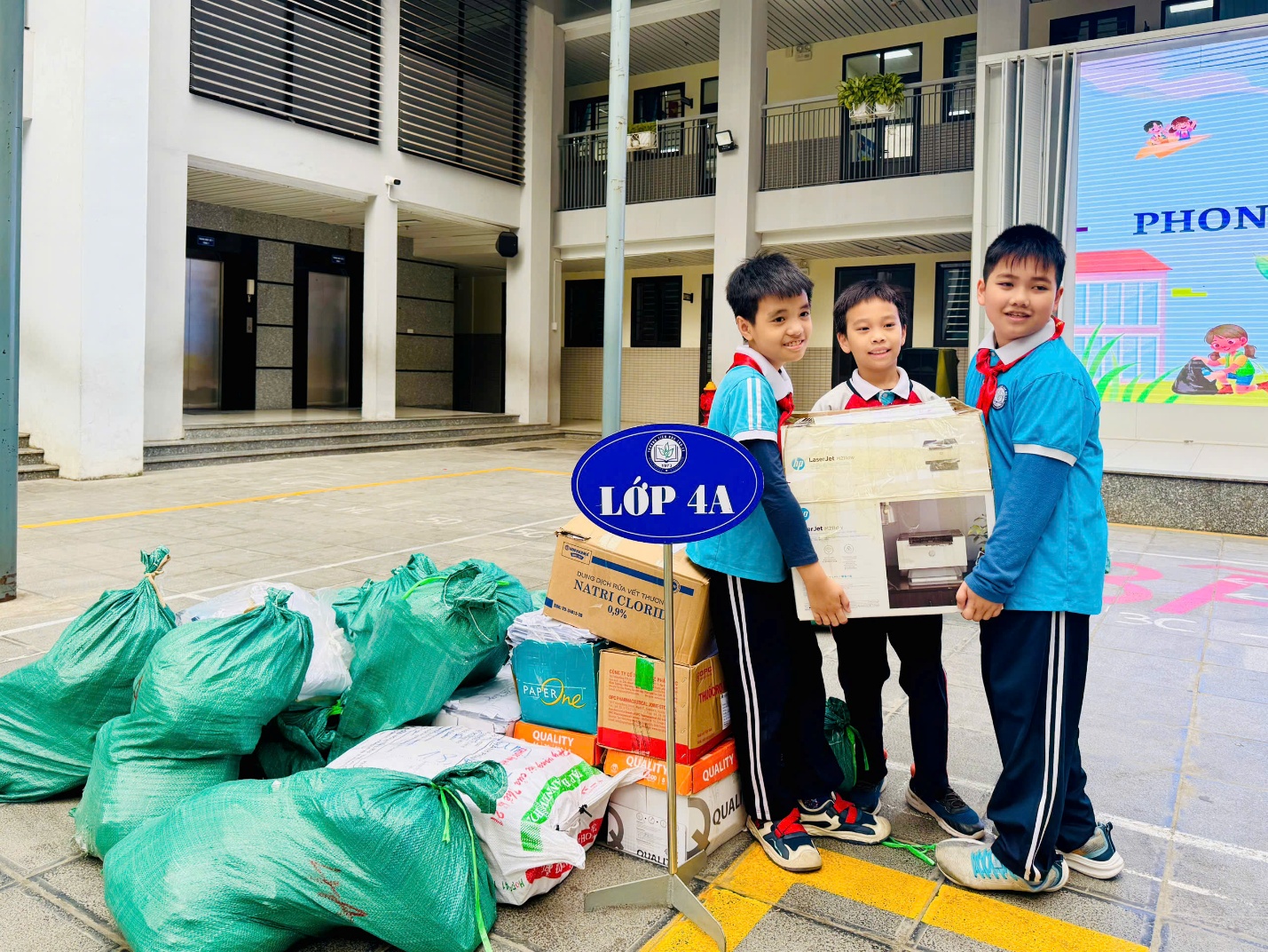 Với sự đồng lòng và nỗ lực của cả tập thể, lớp 4A đã thu gom được khối lượng giấy vụn rất lớn, thể hiện rõ tinh thần hưởng ứng mạnh mẽ và ý thức tiết kiệm của các em học sinh. Mỗi bạn nhỏ đều góp một phần công sức của mình, từ việc phân loại, bó gọn giấy vụn đến vận chuyển, sắp xếp gọn gàng, khoa học. Không khí tham gia phong trào diễn ra sôi nổi, vui tươi và tràn đầy tinh thần đoàn kết.