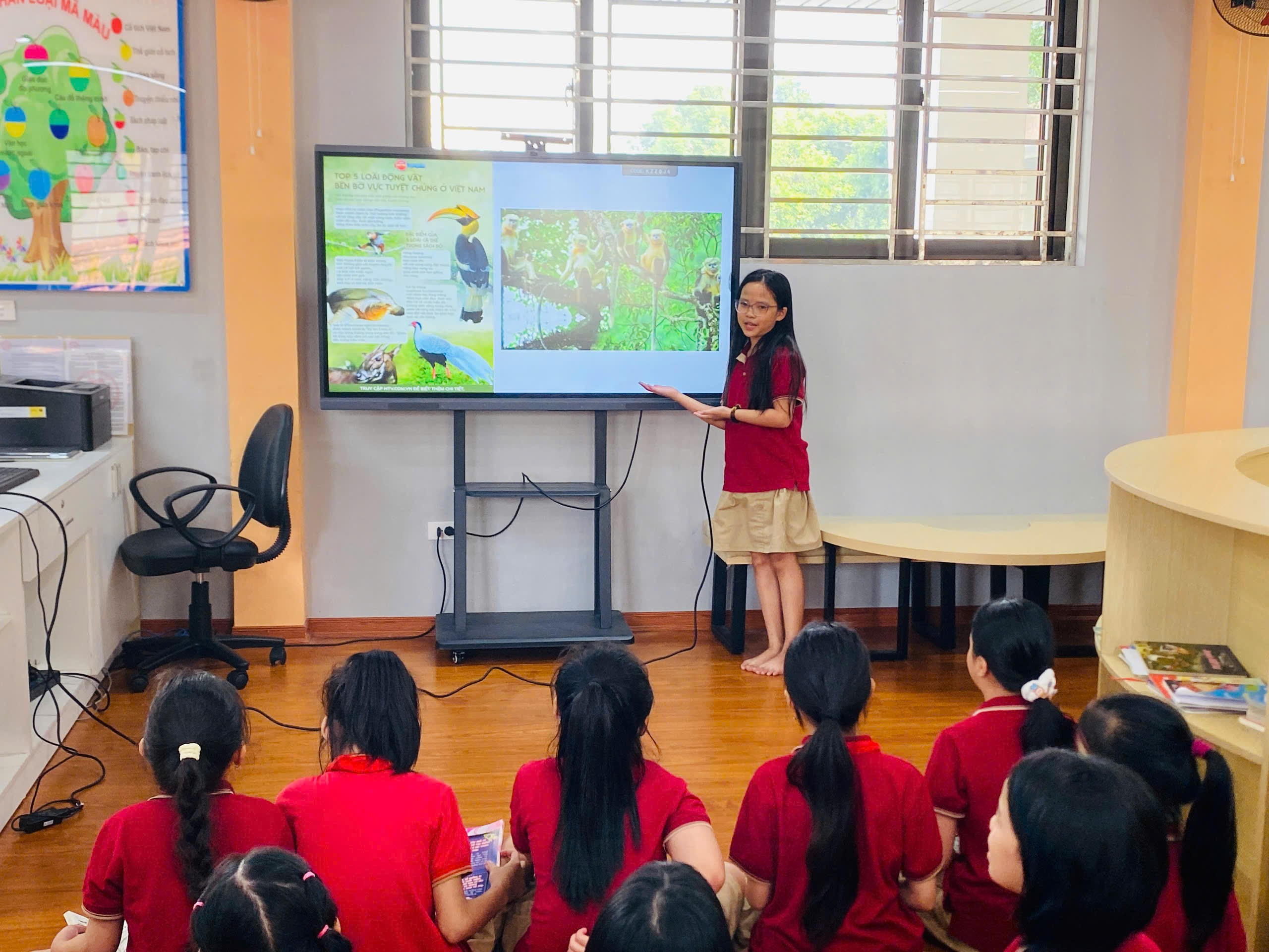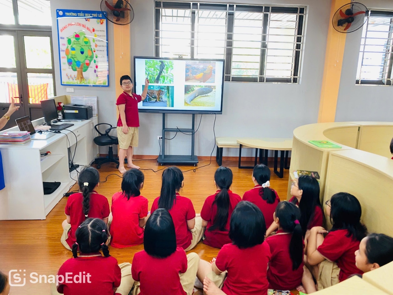 Các “ Nhà kiểm lâm nhí” của lớp 5A đã chuẩn bị rất nhiều sách, tài liệu về các loài động vật hoang dã cho tiết học. Không khí lớp học nhiều lúc trầm hẳn xuống khi các bạn xem những đoạn clip về những con thú bị mắc bẫy, giãy giụa chờ chết. Có lúc, các bạn lại sôi nổi thảo luận hay xem các clip về các biện pháp bảo vệ các loài động vật hoang dã.
