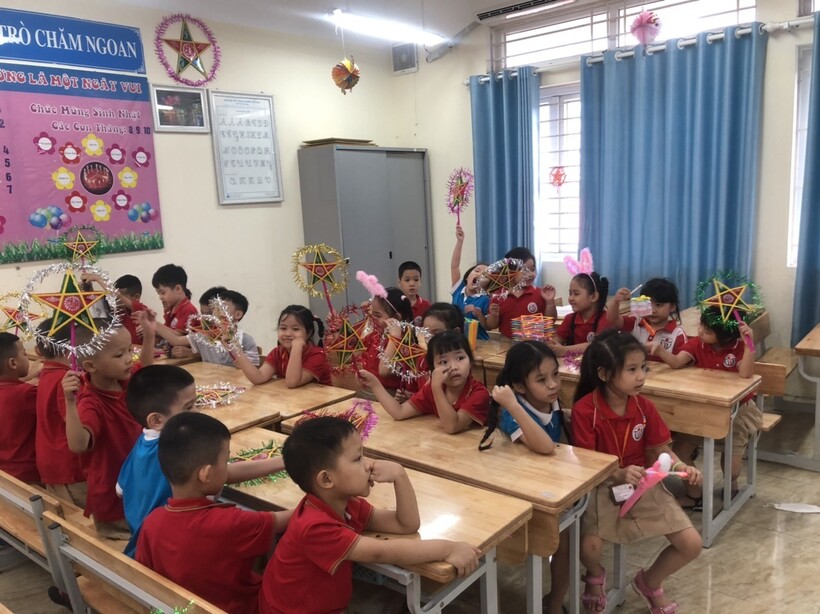 Các bạn lớp1B hớn hở với những chiếc đèn ông sao