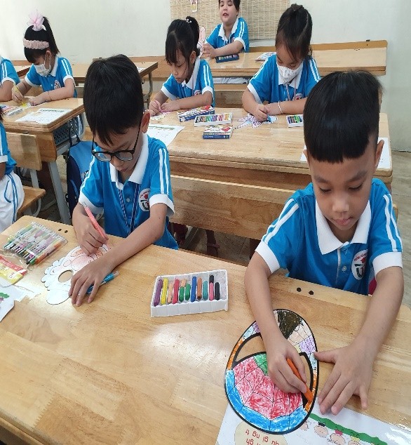 Sự thích thú với những chiếc đèn lồng của các bạn Lớp 1C