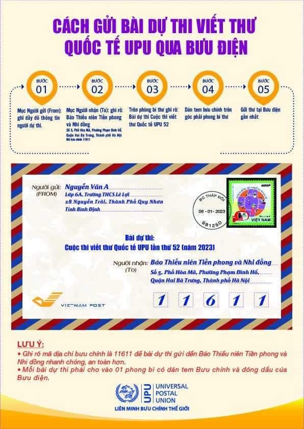 Ngày 09/1/2023, tại Bình Định, Bộ Thông tin và Truyền thông phối hợp với Bộ Giáo dục và Đào tạo, Bộ Tài nguyên và Môi trường, Trung ương Đoàn TNCS Hồ Chí Minh, Hội Nhà văn Việt Nam, Tổng Công ty Bưu điện Việt Nam và Báo Thiếu niên Tiền phong & Nhi đồng tổ phát động cuộc thi Viết thư quốc tế UPU lần thứ 52 năm 2023