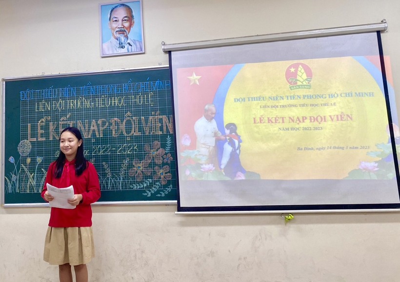 Đứng trước cờ Tổ quốc, cờ Đội, chân dung của Bác Hồ kính yêu, các bạn đội viên mới đã cùng nhau hô vang lời hứa của người đội viên khi vinh dự được đứng vào hàng ngũ của Đội thiếu niên Tiền phong Hồ Chí Minh.