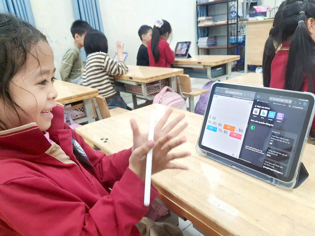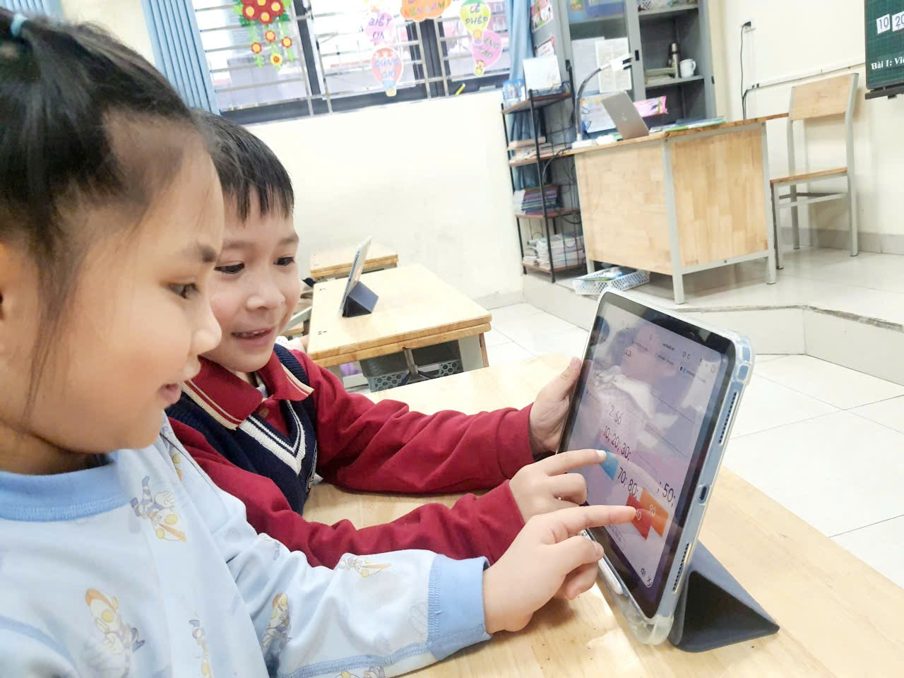 Những trải nghiệm học tập cùng Ipad không chỉ mang đến niềm vui mà còn mở ra cánh cửa tri thức mới lạ cho các bạn nhỏ lớp 1B – nơi mỗi giờ học đều trở thành một hành trình khám phá thú vị. Mỗi bài học giờ đây không chỉ là con chữ và phép tính, mà còn là những trải nghiệm sống động, giúp các em lớp 1B thêm yêu thích việc học mỗi ngày.