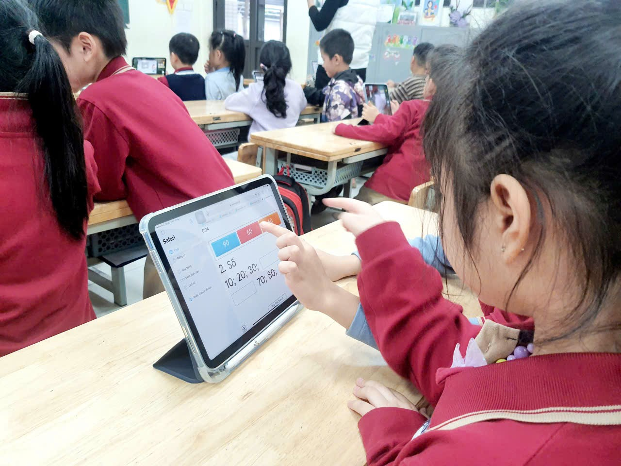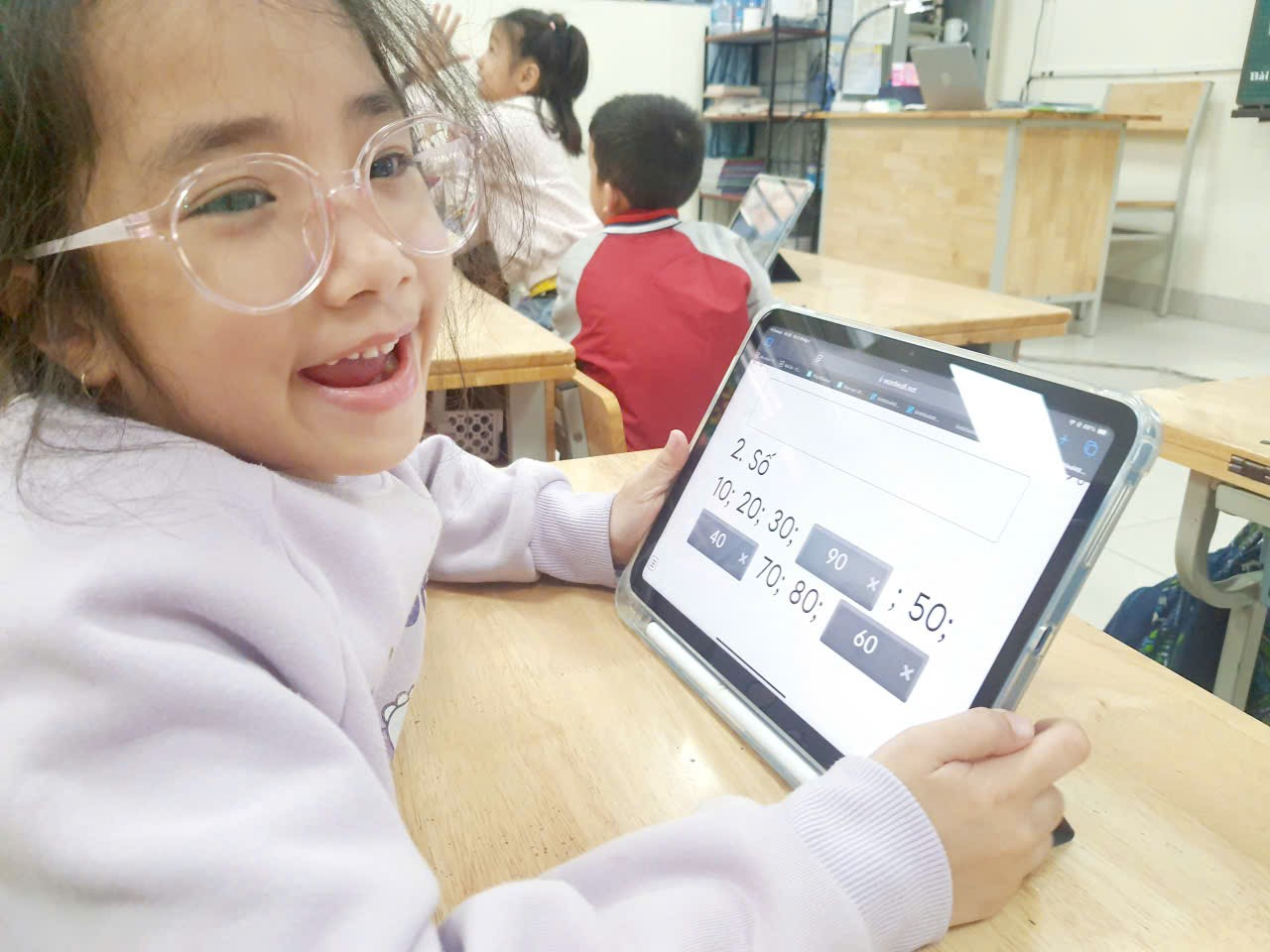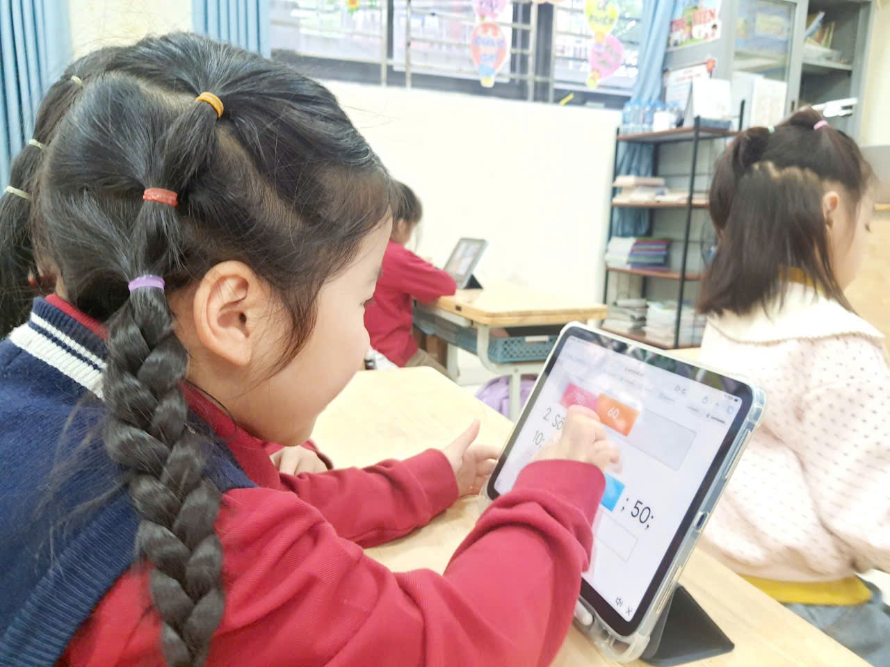 Việc tích hợp công nghệ vào quá trình học tập giúp học sinh được học thông qua trải nghiệm, khám phá, không còn bị giới hạn trong những trang sách hay bảng đen phấn trắng. Học Toán giờ đây trở thành một hành trình khám phá đầy màu sắc và hứng khởi. Tại lớp 1B, ipad đã thực sự góp phần mang đến những giờ học Toán nhẹ nhàng, sinh động và đầy cảm hứng cho các em học sinh.