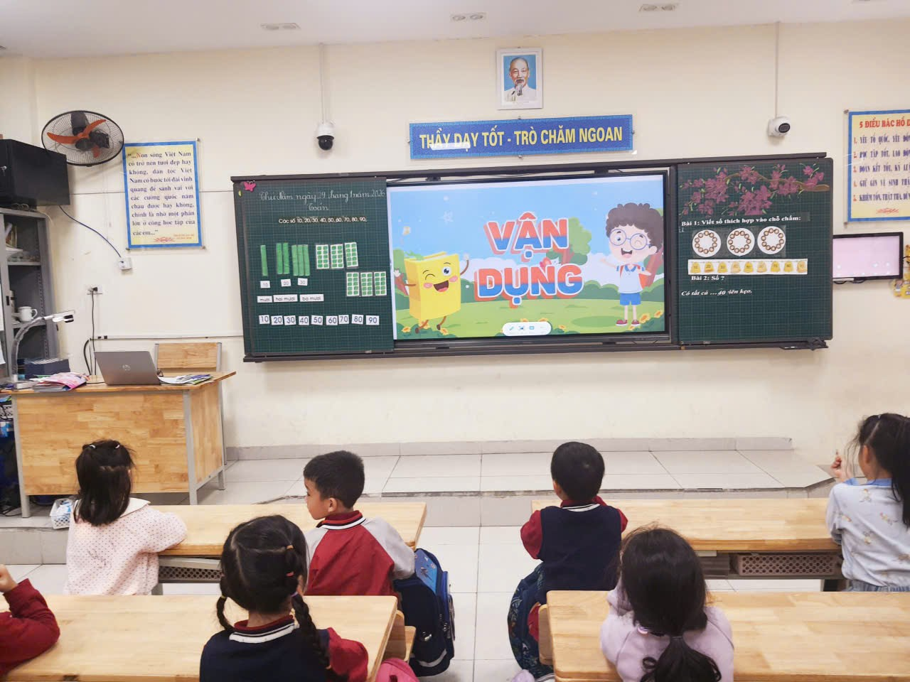 Tại lớp 1B, tiết học Toán đã có những đổi mới rõ nét khi ipad được sử dụng như một công cụ hỗ trợ học tập. Thông qua hình ảnh trực quan, nội dung sinh động cùng phương pháp tiếp cận gần gũi, học sinh được tham gia vào những giờ học Toán đầy hứng thú. Điều này không chỉ giúp các em dễ dàng tiếp thu kiến thức mà còn khơi dậy niềm say mê học tập, phát triển tư duy sáng tạo và từng bước hình thành kỹ năng sử dụng công nghệ một cách hiệu quả.