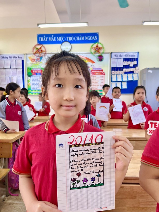 Những tấm thiệp xinh xắn cùng lời chúc đáng yêu do chính các em làm nên là món quà ý nghĩa, tuyệt vời nhất dành tặng bà, tặng mẹ, tặng cô giáo nhân ngày Phụ nữ Việt Nam 20/10.