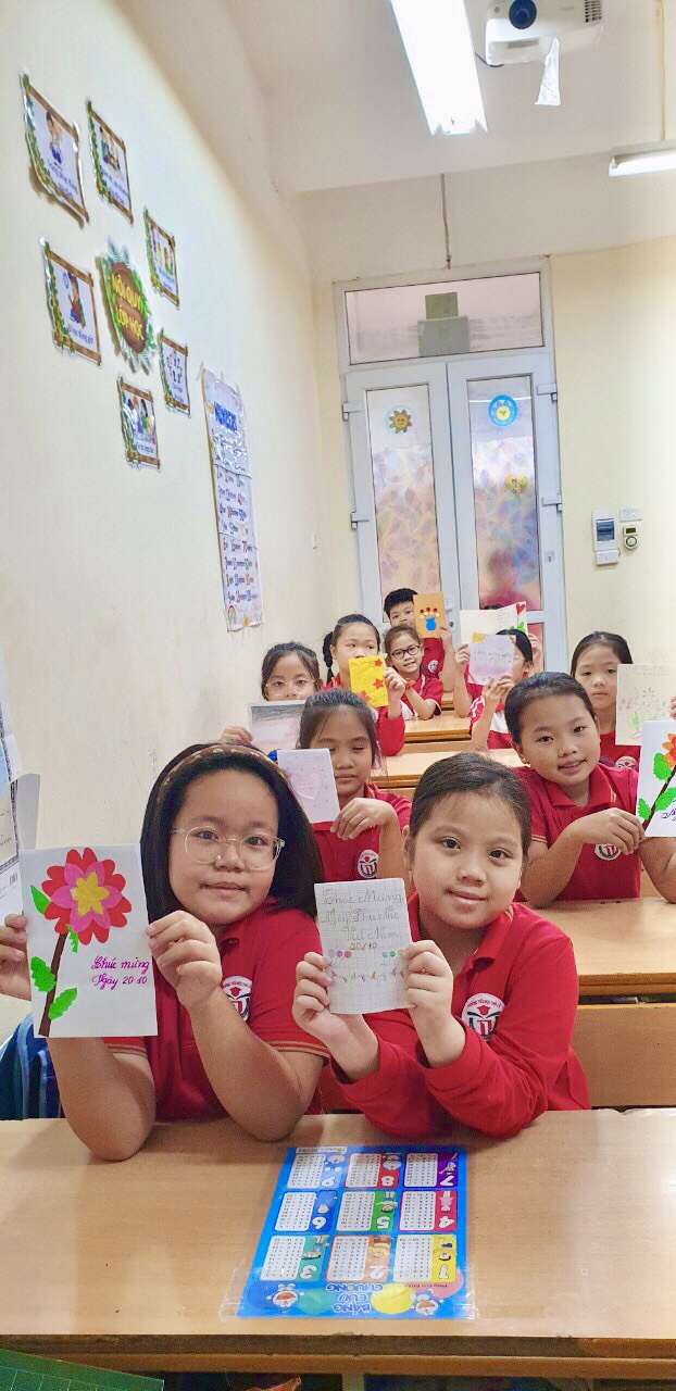Sau đây là một số hình ảnh các em học sinh đang làm thiệp tặng bà, tặng mẹ, tặng cô nhân ngày Phụ nữ Việt Nam 20/10.
