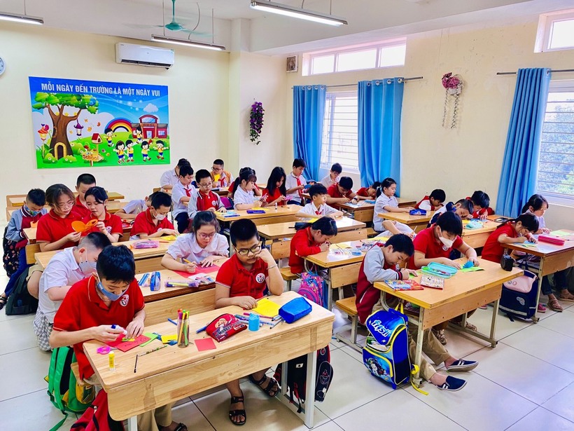Học sinh khối 3 hào hững hoàn thành "Tấm thiệp yêu thương"