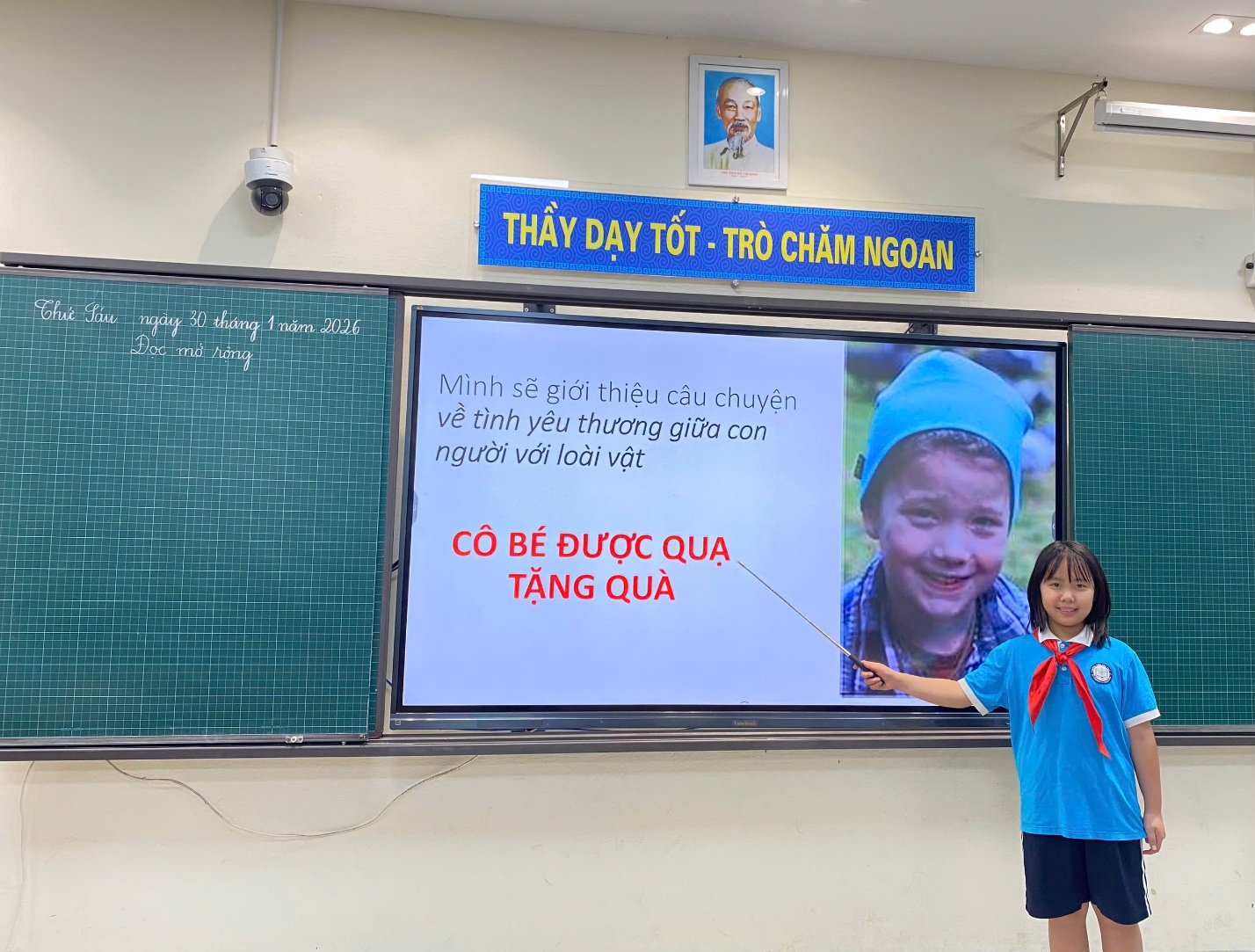Không chỉ là một tiết học đọc mở rộng thông thường, tiết đọc mở rộng Tuần 20 của lớp 4B đã trở thành một “sân khấu nhỏ” để mỗi học sinh kể lại câu chuyện mình yêu thích, chia sẻ bài học rút ra, và gửi gắm thông điệp yêu thương theo cách rất hiện đại: thuyết trình bằng PowerPoint/Canva.