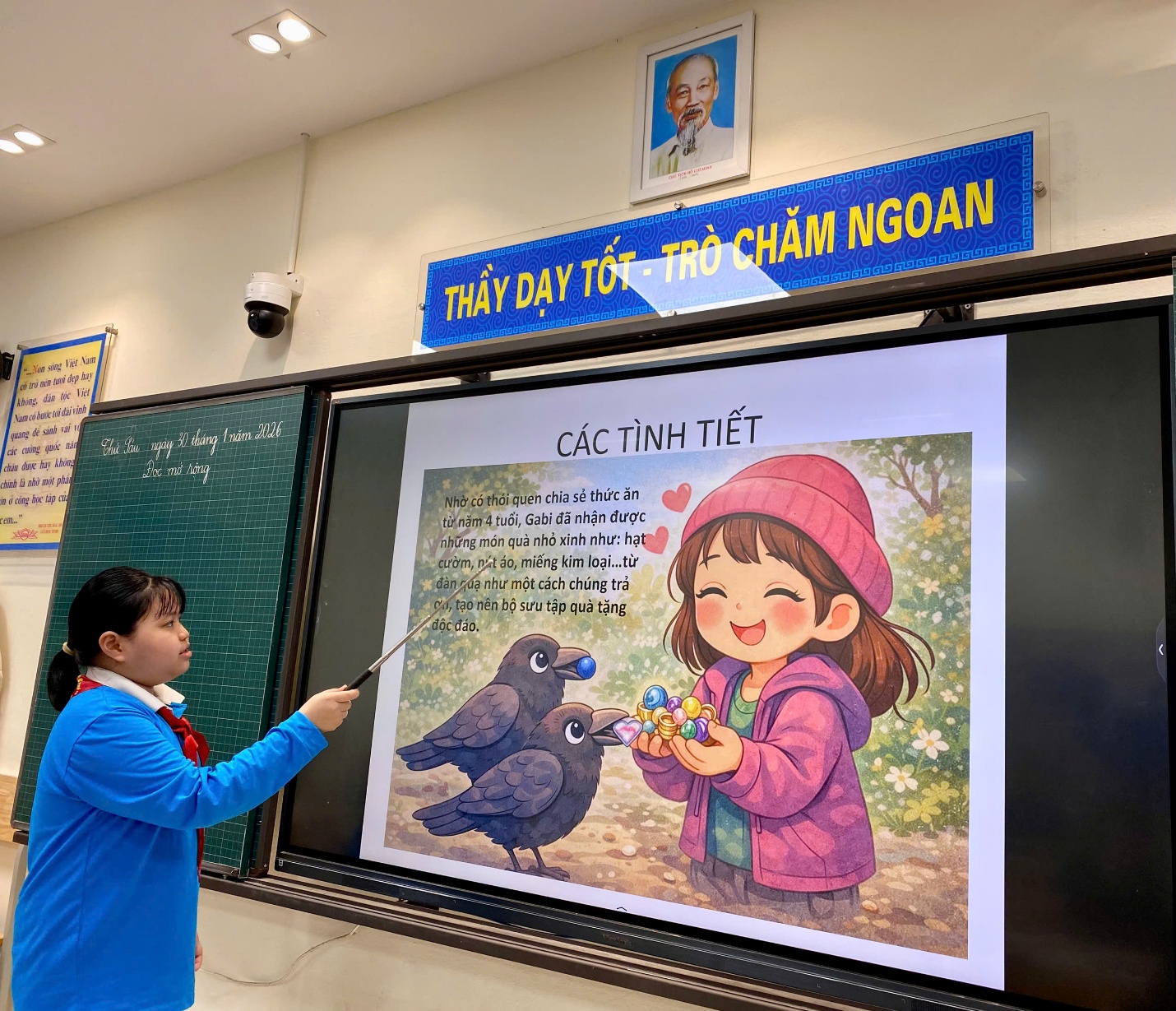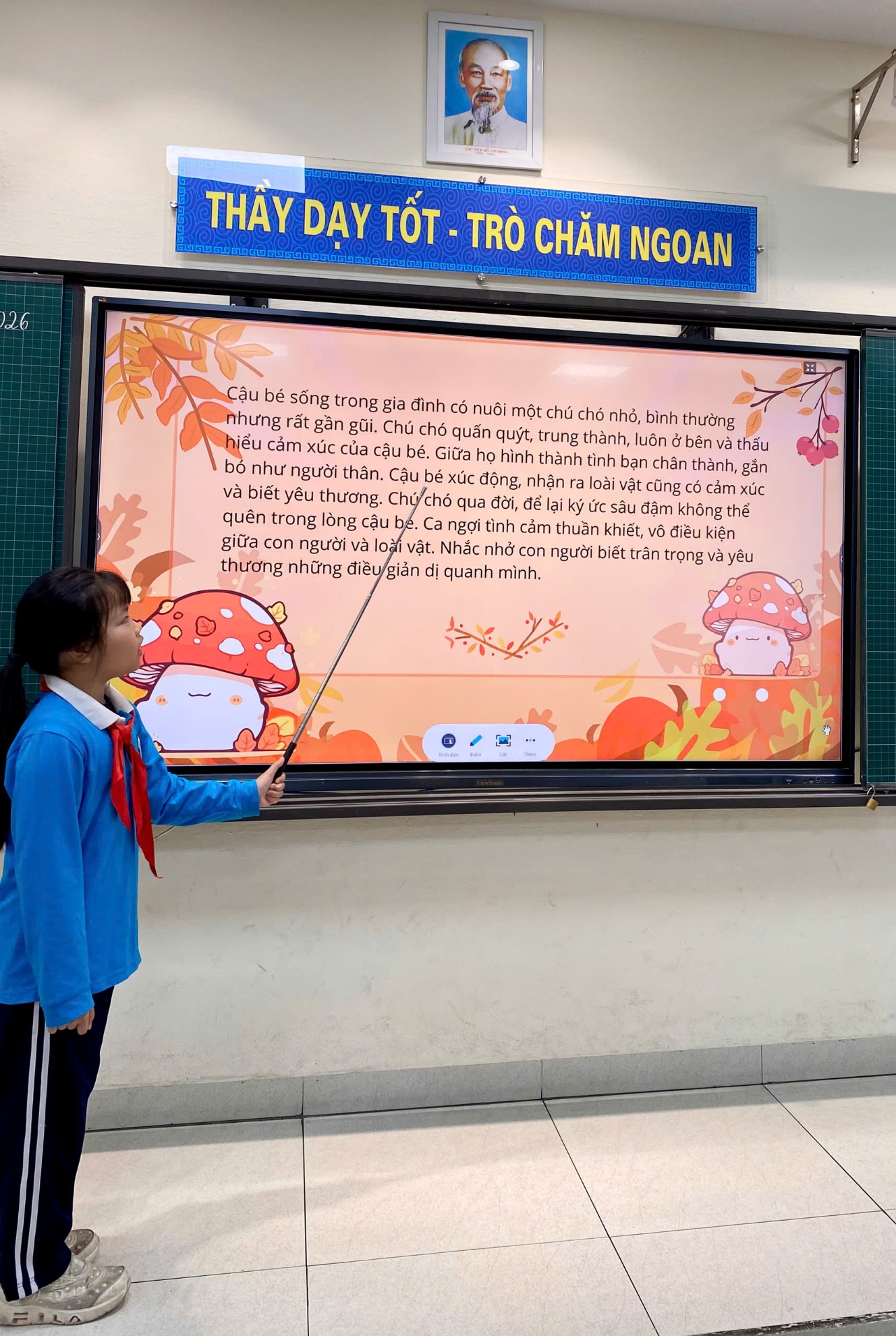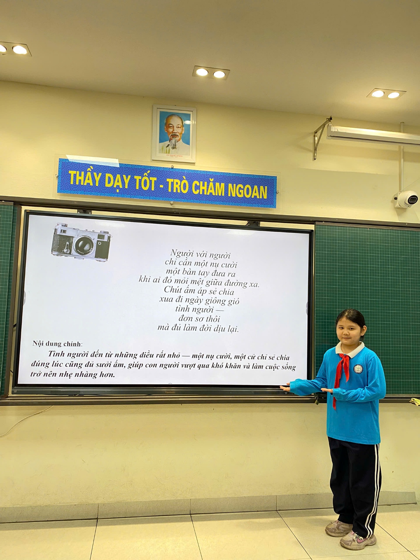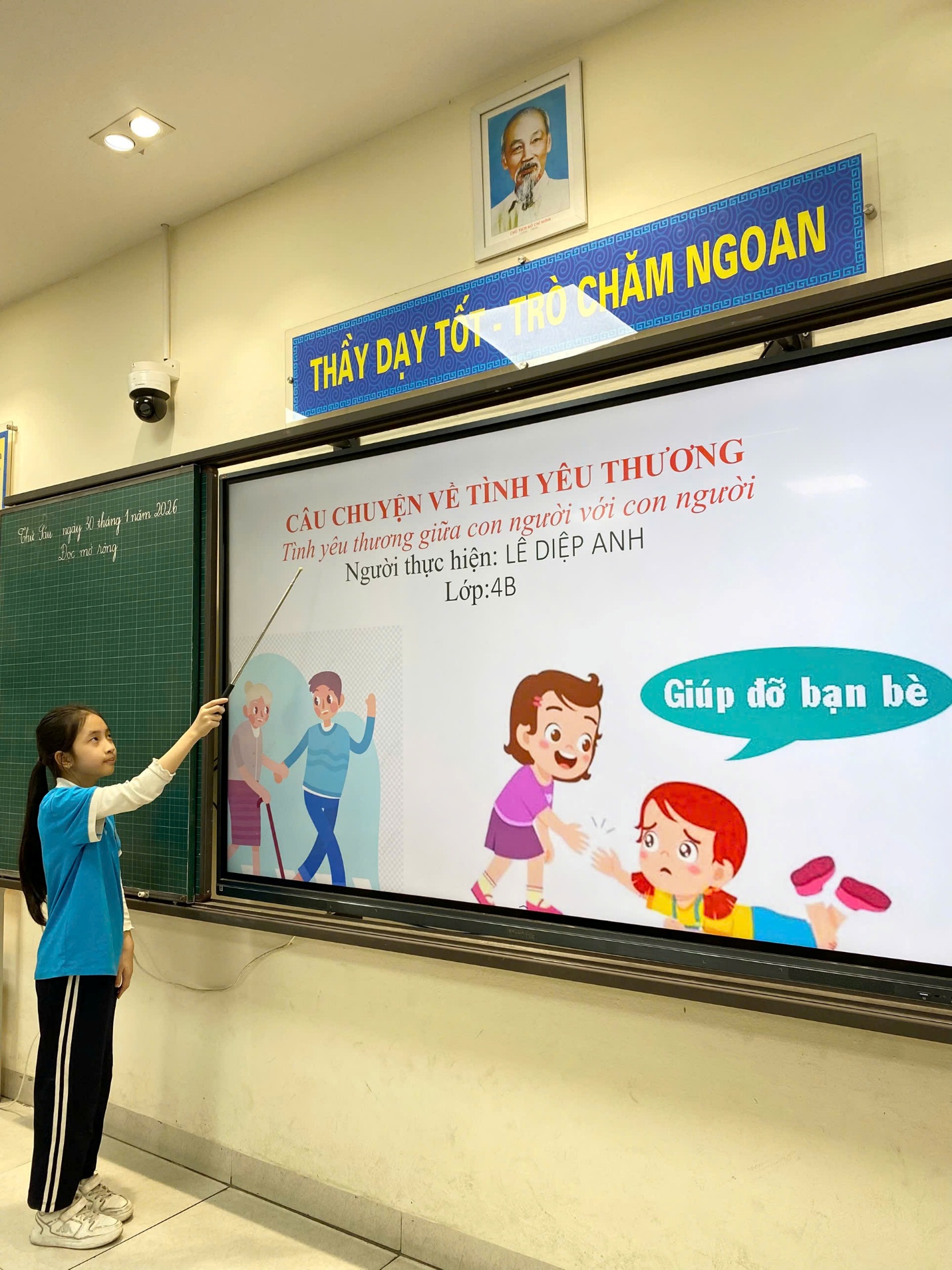 Tiết học khép lại trong không khí vui tươi và đầy tự hào: học sinh lớp 4B không chỉ đọc để hiểu, mà còn đọc để cảm, đọc để lan tỏa. Quan trọng hơn, các con đã được rèn luyện những năng lực cần thiết của thời đại số: chủ động học tập, trình bày rõ ràng, sử dụng công cụ số an toàn – hiệu quả, và biết biến bài học trong sách thành hành động đẹp trong đời sống.