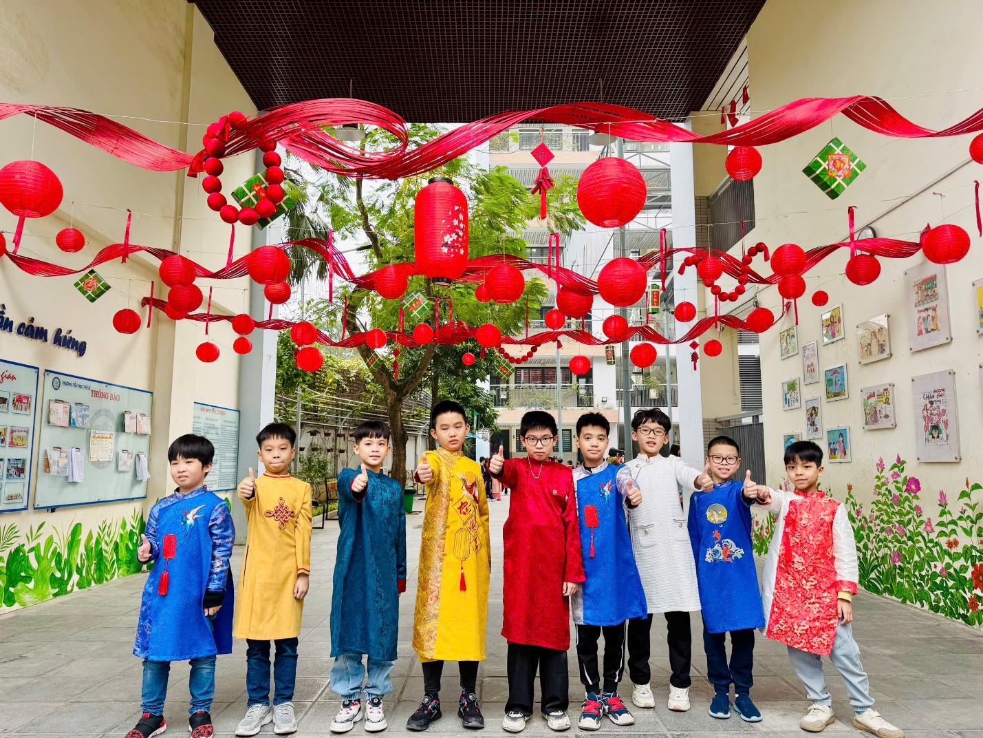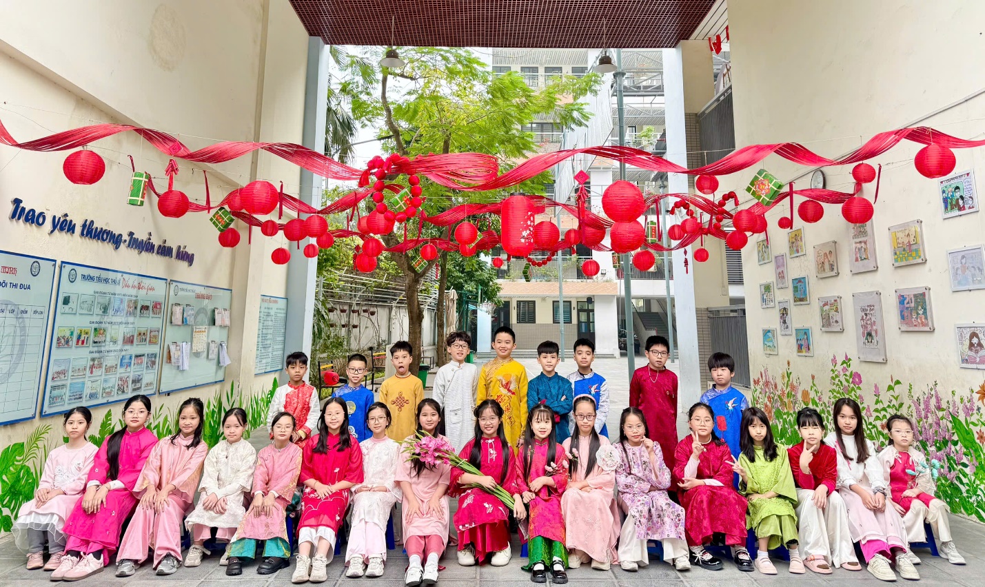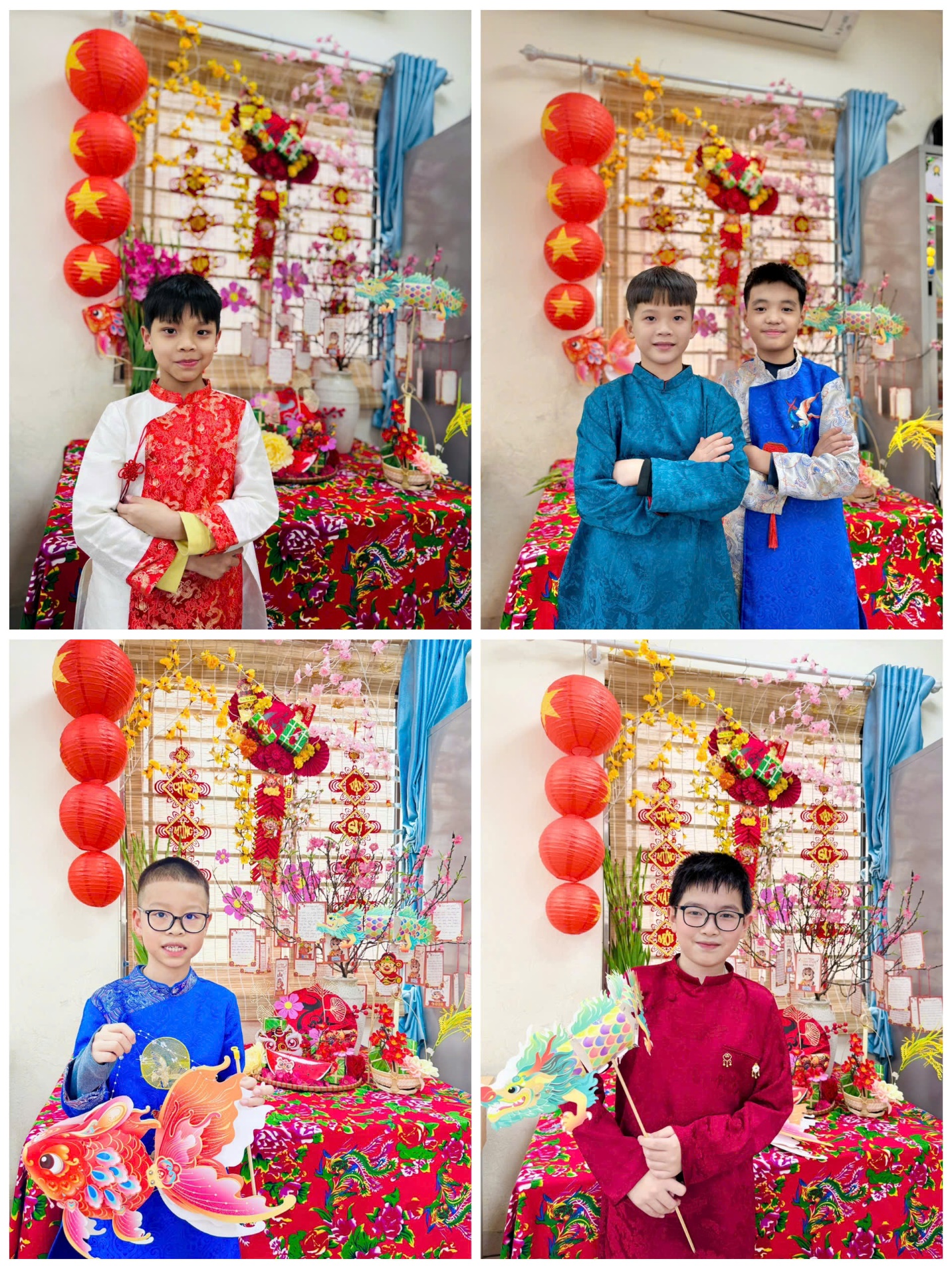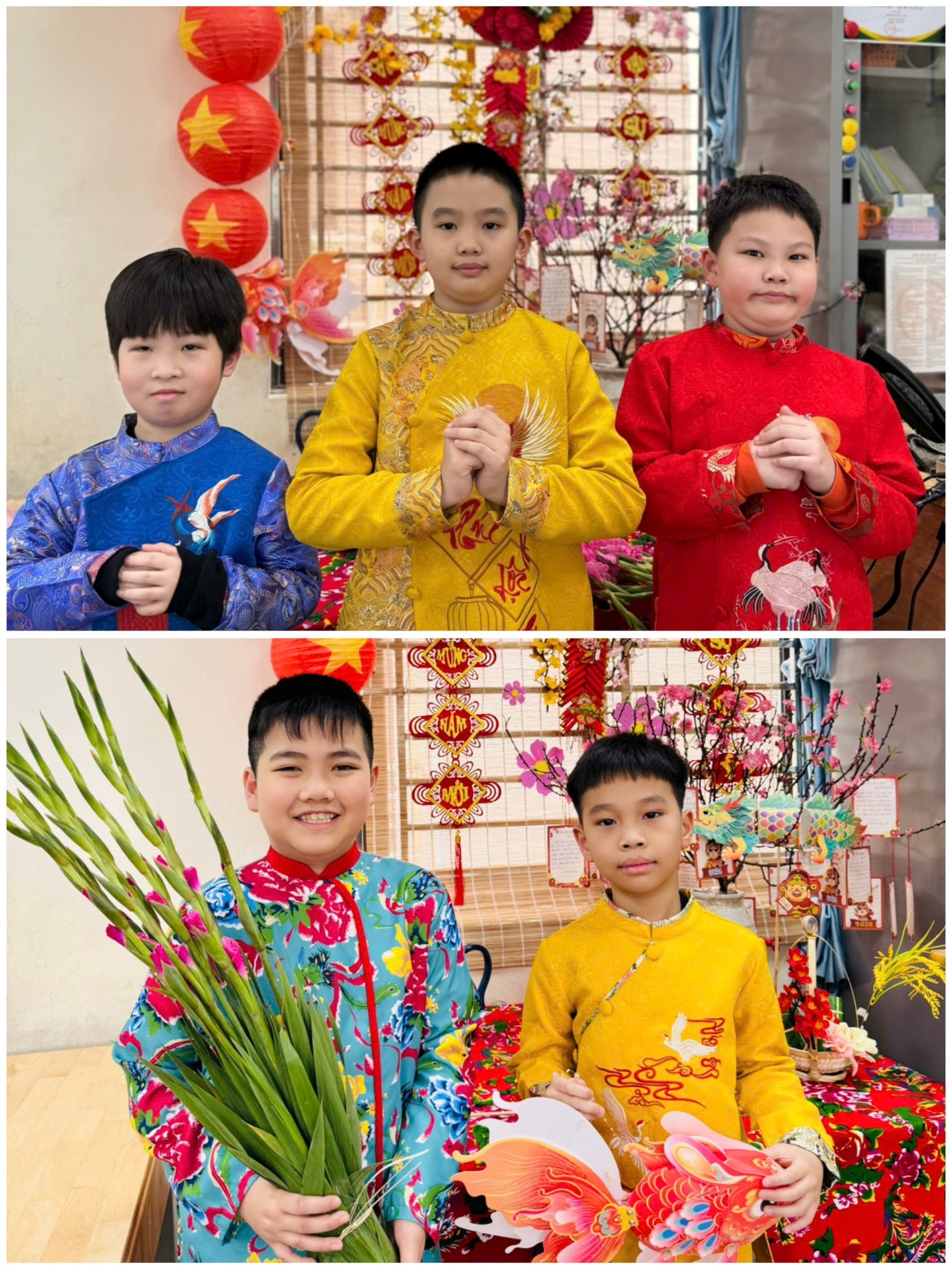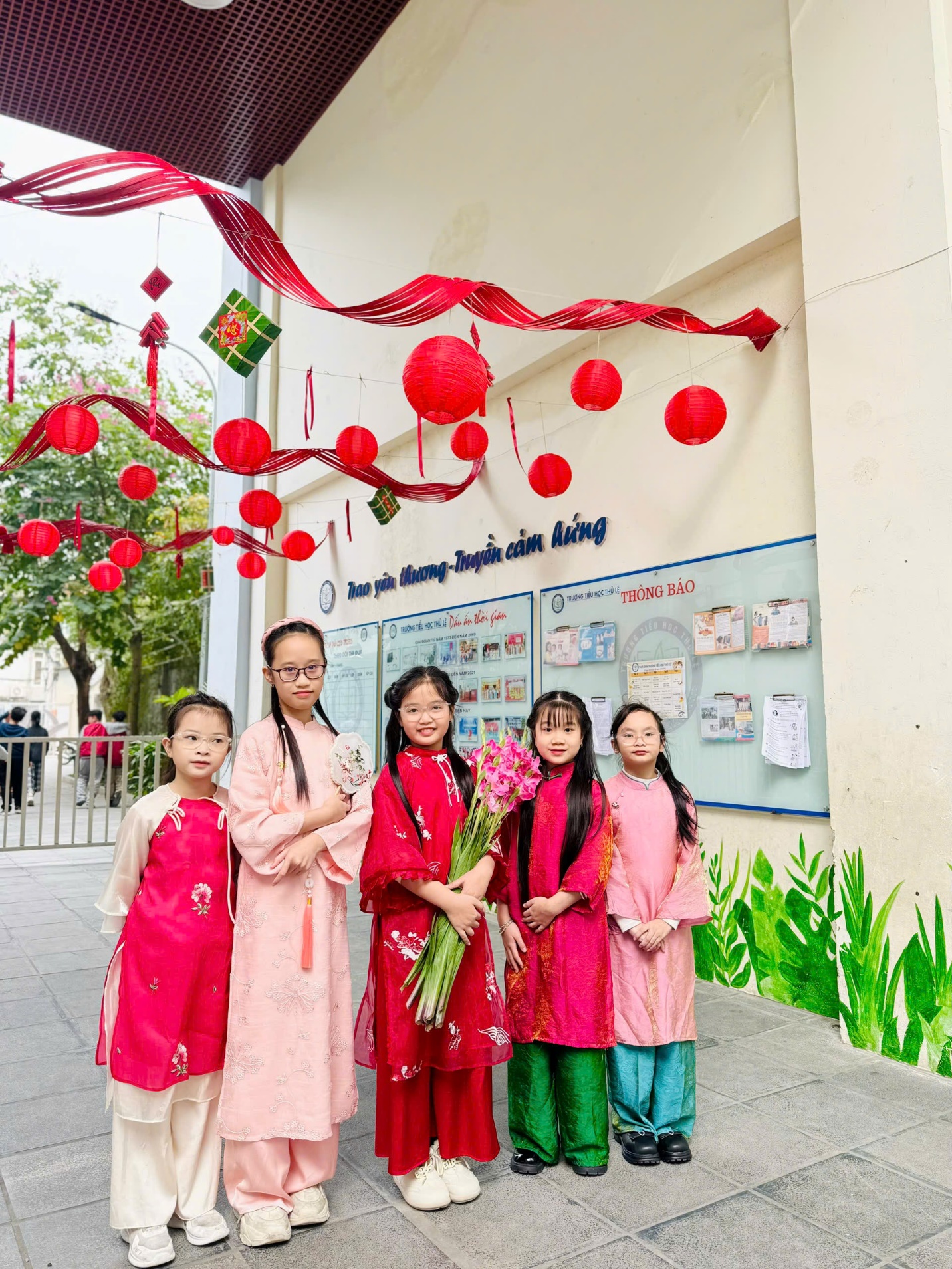 Dưới bàn tay khéo léo và sự sáng tạo của cô giáo và các bác phụ huynh, không gian lớp học 4A khoác lên mình “chiếc áo mới” rực rỡ sắc xuân. Những chiếc đèn lồng đỏ thắm, câu đối chúc xuân, cành đào thắm tươi và các vật trang trí truyền thống được chuẩn bị, sắp xếp gọn gàng đẹp mắt. Đặc biệt, hình ảnh các bạn học sinh trong trang phục áo dài truyền thống, tay nâng những bó hoa lay ơn, nụ cười rạng rỡ đã tạo nên một bức tranh mùa xuân thật trong trẻo và ấm áp.