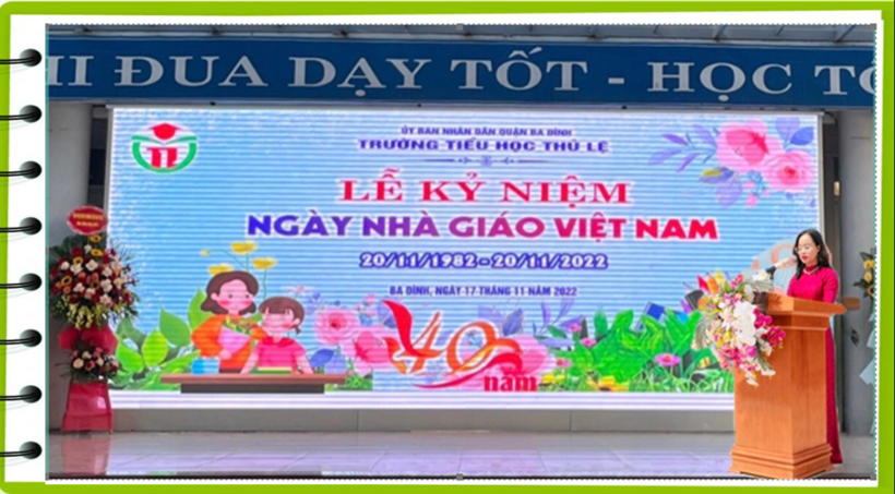 Xuyên suốt các hoạt động trong ngày Lễ kỉ niệm 40 năm Ngày nhà giáo Việt Nam được diễn ra trang trọng và đầy cảm xúc, ôn lại những truyền thống tốt đẹp, vẻ vang, cao quý của người thầy, để các em học sinh tỏ lòng tri ân đến các thầy cô giáo đã truyền dạy cho các em kiến thức, lễ nghĩa. Với mục tiêu giáo dục toàn diện về "Đức - Trí - Thể - Mĩ" cho các em học sinh vững bước vào đời, trường Tiểu học Thủ Lệ lấy kỉ cương, nề nếp làm nền tảng, lấy tâm huyết, yêu nghề của giáo viên làm động lực; sự tích cực, chủ động của học sinh làm yếu tố quyết định. Nhờ đó, nhà trường đã gặt hái được những thành quả nhất định trong thời gian qua.