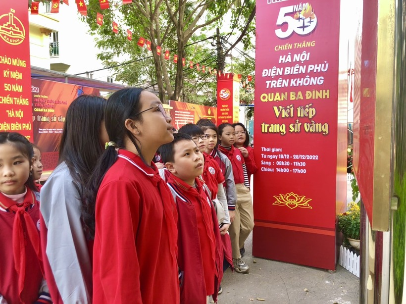 Trong chuyến đi, học sinh đã được tham quan triển lãm “50 năm Hà Nội - Điện Biên Phủ trên không”, nhìn lại những trang sử hào hùng của quân và dân Thủ đô trong suốt 12 ngày đêm chiến đấu quên mình, được cùng trò chuyện với các Cựu chiến binh phường Ngọc Hà và hơn cả là được tận mắt chứng kiến “pháo đài bay” B52 bị bắn rơi cách đây 50 năm.